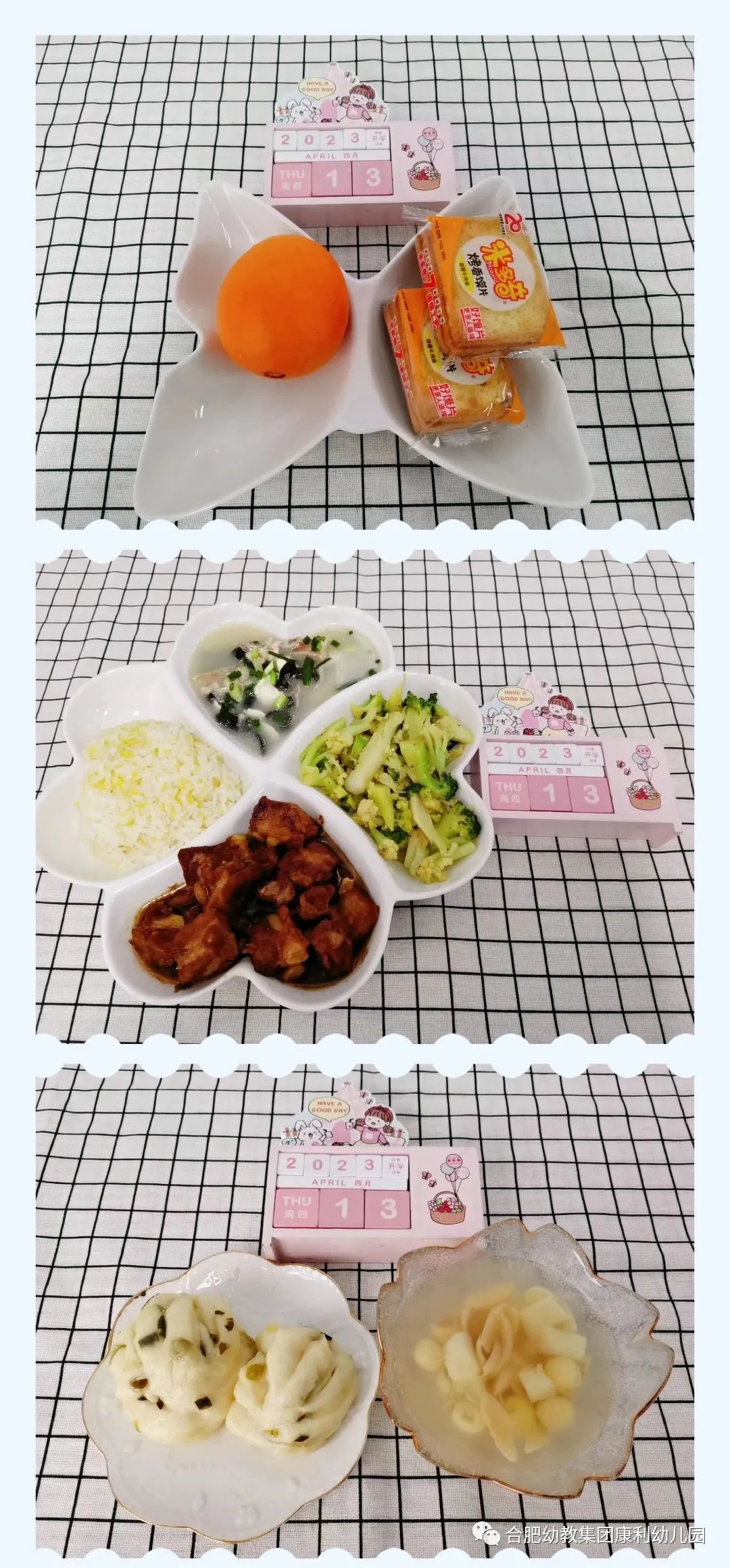 午餐:金银米饭、红烧排骨、爆炒双花(花菜、西兰花)、香浓黑木耳鲫鱼汤(木耳、豆腐、鲫鱼)