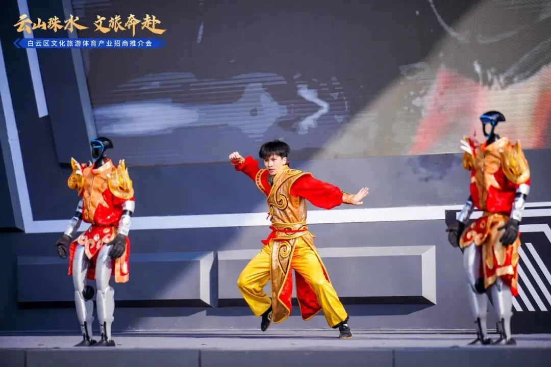 9:30起,嘉宾在主题签到后参观文商旅体融合创新成果展;暖场表演中,人类与机器人共舞非遗洪拳,科技与传统文化碰撞火花;随后的短片展示、领导致辞环节后,《白云区推动演艺文化产业高质量发展三年行动方案》正式发布,电竞产业亮点、广湛高铁沿线城市文旅联盟签约等环节依次展开,14个项目签约与三大重点项目推介,为白云文旅注入新动能。 无界演绎与白云文旅的融合正恰逢其时。作为深耕文化领域的创新团队,公司以“IP内容+专业演绎+文旅场景”模式,可助力白云区破解文旅同质化痛点。其“随地大小演”体系能活化南湖乐园等文旅空间,非遗元素IP打造可呼应白云非遗传承需求,而低空飞行表演、沉浸式戏剧等创新形式,可丰富“云飞扬”“云畅游”等文旅品牌内涵。