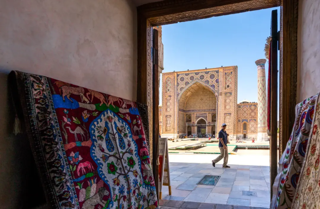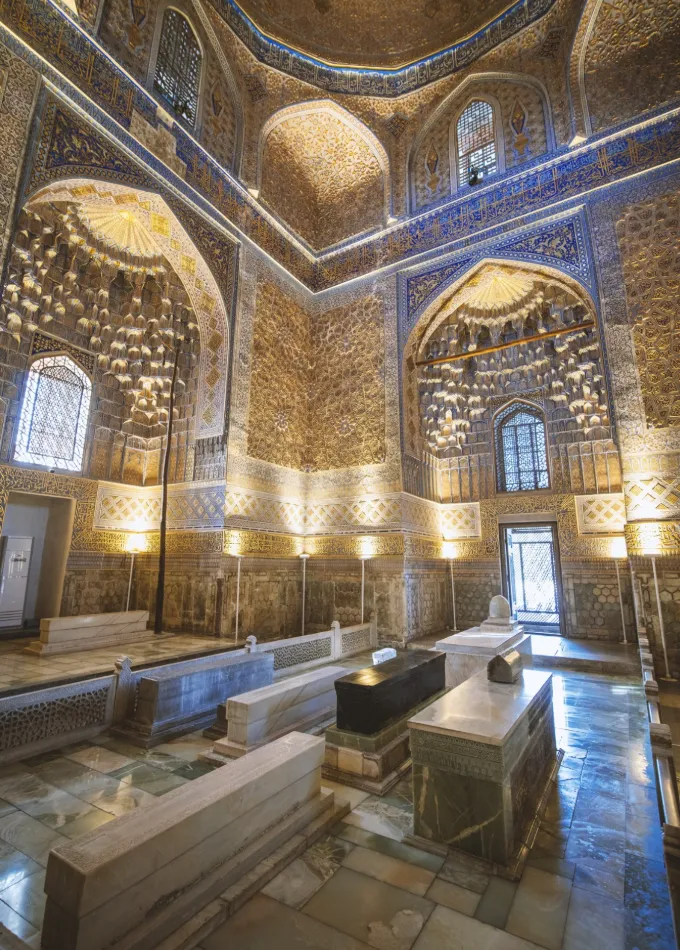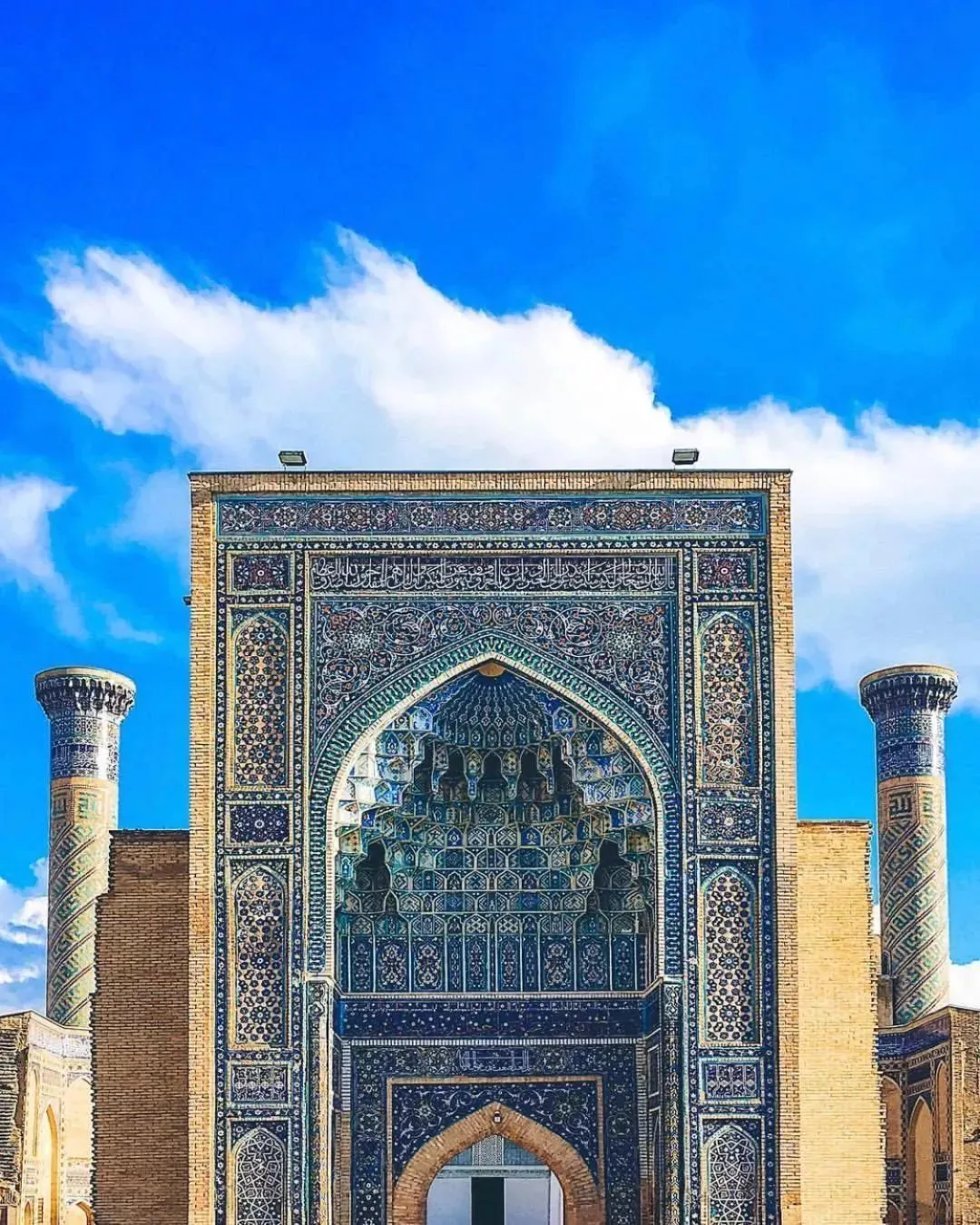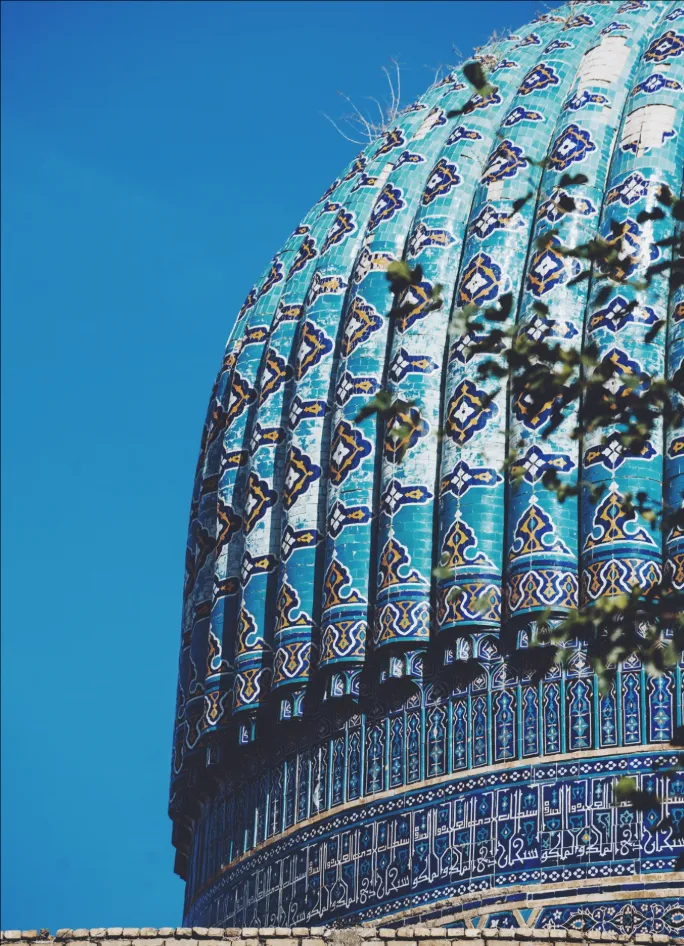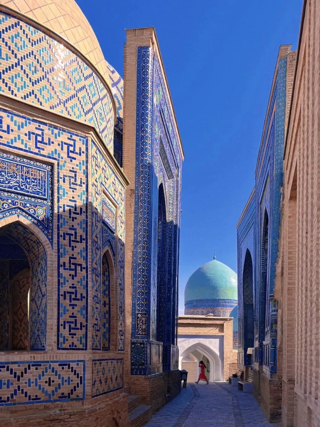 这里曾经是花剌子模的首都,也是帖木儿帝国的国都。帖木儿从征服的国家虏来最优秀的建筑师和工匠,将帝国的首都缔造为古代伊斯兰世界的中心,也吸引着全世界的商人“踏上了通往撒马尔罕的黄金之路”。绿松石蓝的穹顶、细密入微的瓷砖装饰,为世人留下了教科书级别的伊斯兰艺术。