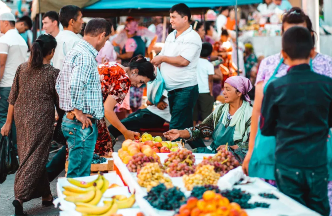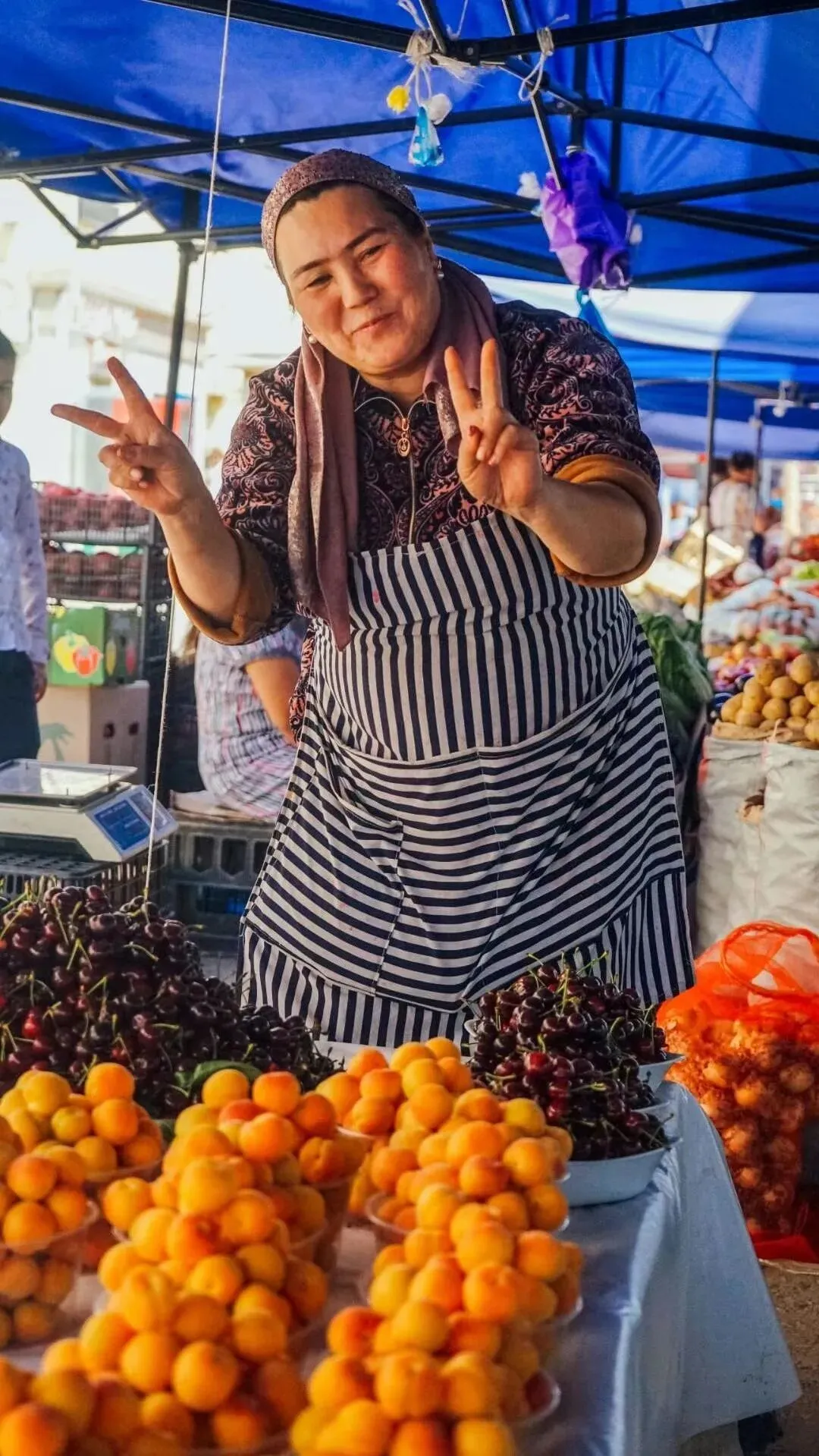 就在比比哈努姆清真寺北面,铁皮顶下的热闹集市是乌兹别克斯坦最上镜的一个巴扎。除了中亚常见的食物、水果、香料,你还会看到各种各样的韩国泡菜,商贩也是朝鲜族。这事关中亚一段历史,二战时斯大林为了防止“后院着火”,怕其境内的朝鲜人转而倒戈投奔日本,就将这批人迁来了中亚。