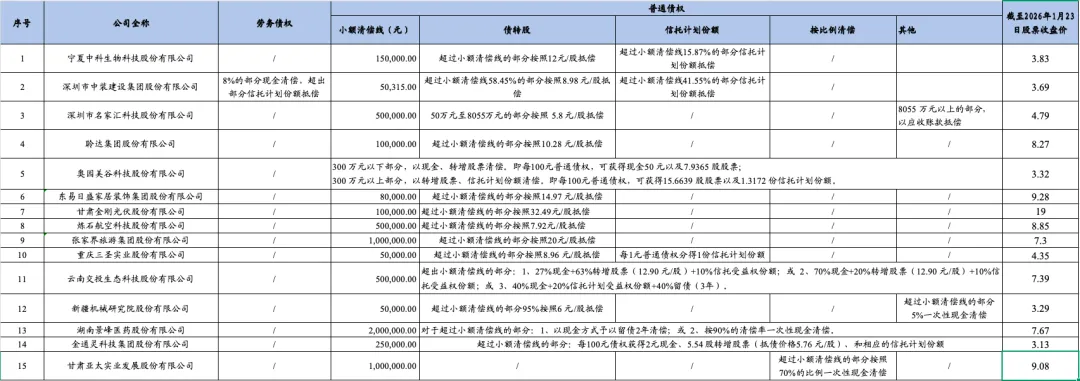 根据15家上市公司重整计划的公开披露情况,各家上市公司优先债权和非优先债权的清偿方案如下: