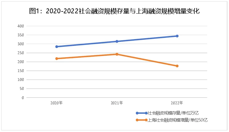 据人民银行相关数据,2022年末我国社会融资规模存量为344.21万亿元,同比增长9.6%。其中,对实体经济发放的人民币贷款余额为212.43万亿元,同比增长10.9%;2021年末我国社会融资规模存量为314.13万亿元,同比增长10.3%。其中,对实体经济发放的人民币贷款余额为191.54万亿元,同比增长11.6%;2020年末我国社会融资规模存量为284.83万亿元,同比增长13.3%。其中,对实体经济发放的人民币贷款余额为171.6万亿元,同比增长13.2%(详见图1)。从结构来看,各年末对实体经济发放的人民币贷款余额均占各年份社会融资规模存量的60%以上。从上海市的社会融资规模增量数据来看,2022年上海新增社会融资8848亿元、2021年上海新增社会融资12126亿元,2020年上海新增社会融资10916亿元,上述数据反映出,社会融资规模始终处于增长态势,但上海市在社会融资规模增量上出现疲软。