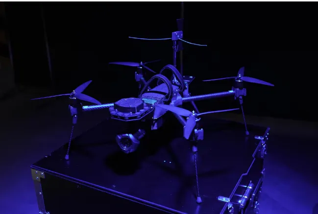 2025年4月8日,一架Zoom UAV多旋翼侦察无人机在乌克兰基辅的一场展览上展出。