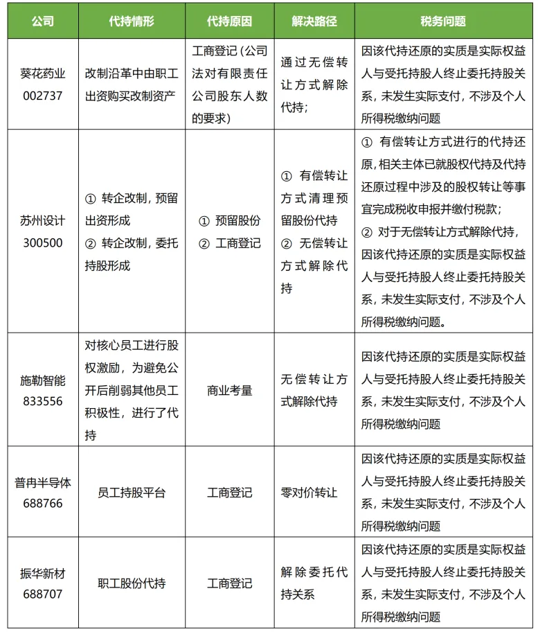 三、上市公司Pre-IPO 股权代持还原案例表
