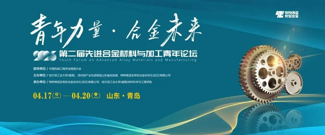 由中国机械工程学会铸造分会指导,哈尔滨工业大学(威海)、滨州铝产业先进制造山东省实验室、特种铸造及有色合金杂志社(武汉)有限公司联合主办,特种铸造及有色合金杂志社(武汉)有限公司和哈尔滨工业大学(威海)材料科学与工程学院承办的2026年第二届先进合金材料与加工青年论坛定于2026年4月17-20日在山东青岛隆重召开。