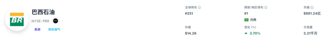 巴西石油,即巴西国家石油公司(简称“巴油”,葡萄牙语:Petrobras),公司成立于1953年10月3日,总部位于里约热内卢。