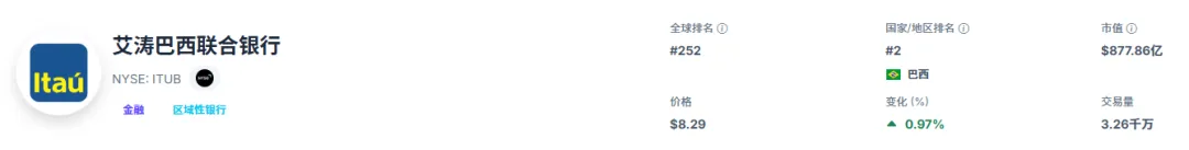 艾涛巴西联合银行成立于2008年,巴西大型综合性金融服务集团,总部位于圣保罗。