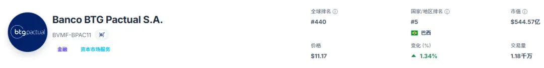巴西百达投资银行(BTG Pactual)是巴西一家经营投资银行,财富管理和资产管理的金融公司,也是拉丁美洲最大的投资银行。BTG Pactual于1983年在巴西里约热内卢市成立,现如今总部位于巴西圣保罗,已开设30家分行。