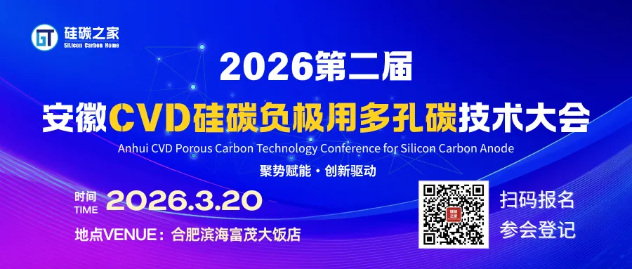 为进一步推动为硅碳负极材料技术进步,由硅碳之家主办的“2026安徽第二届CVD硅碳负极用多孔碳技术大会”将于3月20日在安徽合肥滨湖富茂大饭店召开,大会以“聚势赋能 创新驱动”为主题,聚焦多孔碳与硅碳负极的协同发展,共同探讨CVD 工艺优化、多孔碳结构设计、高比容量 / 长循环性能提升、低成本量产技术以及环保制备工艺等行业痛点,深度拆解从实验室研发到硅碳负极量产应用的全链条技术路径,加速多孔碳技术向硅碳负极产业成果转化。