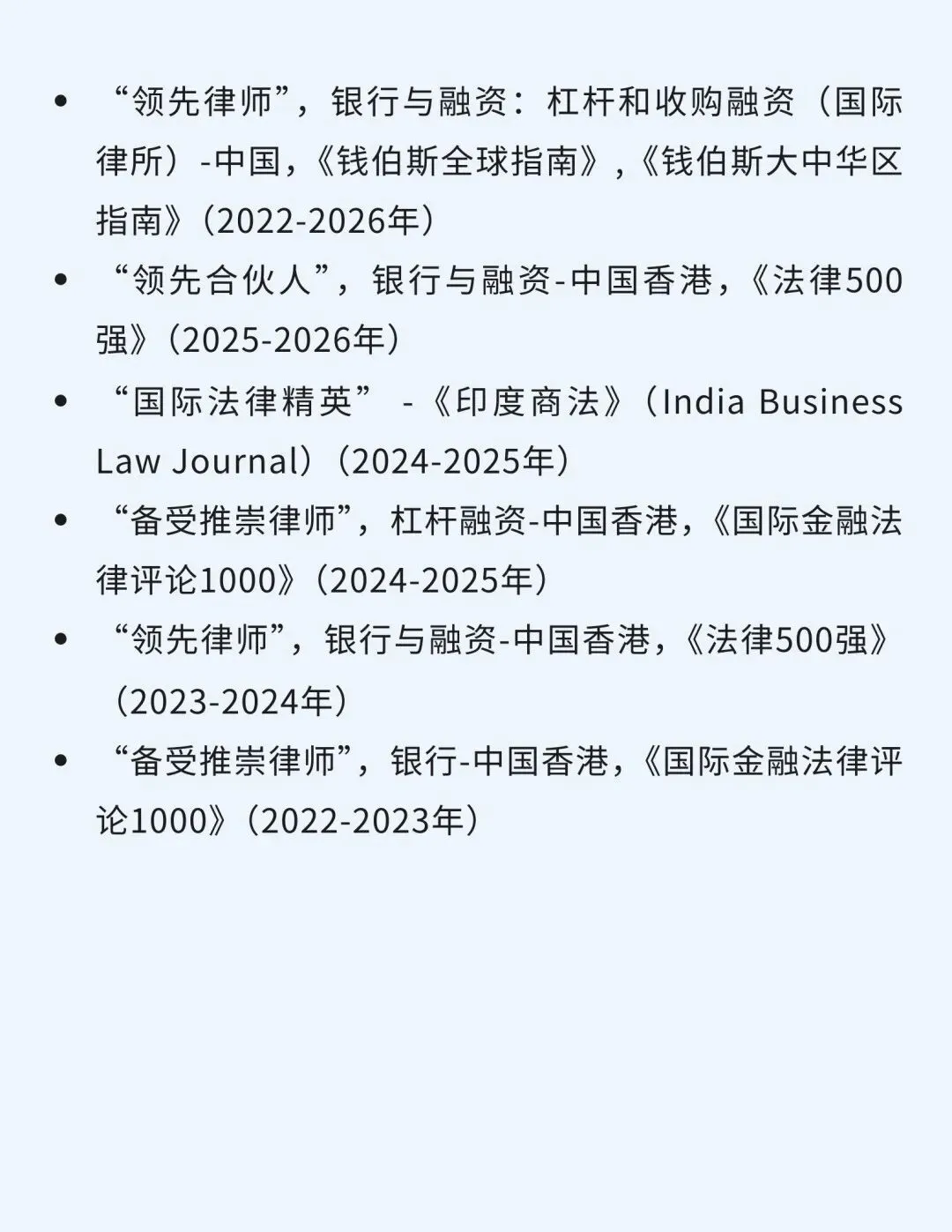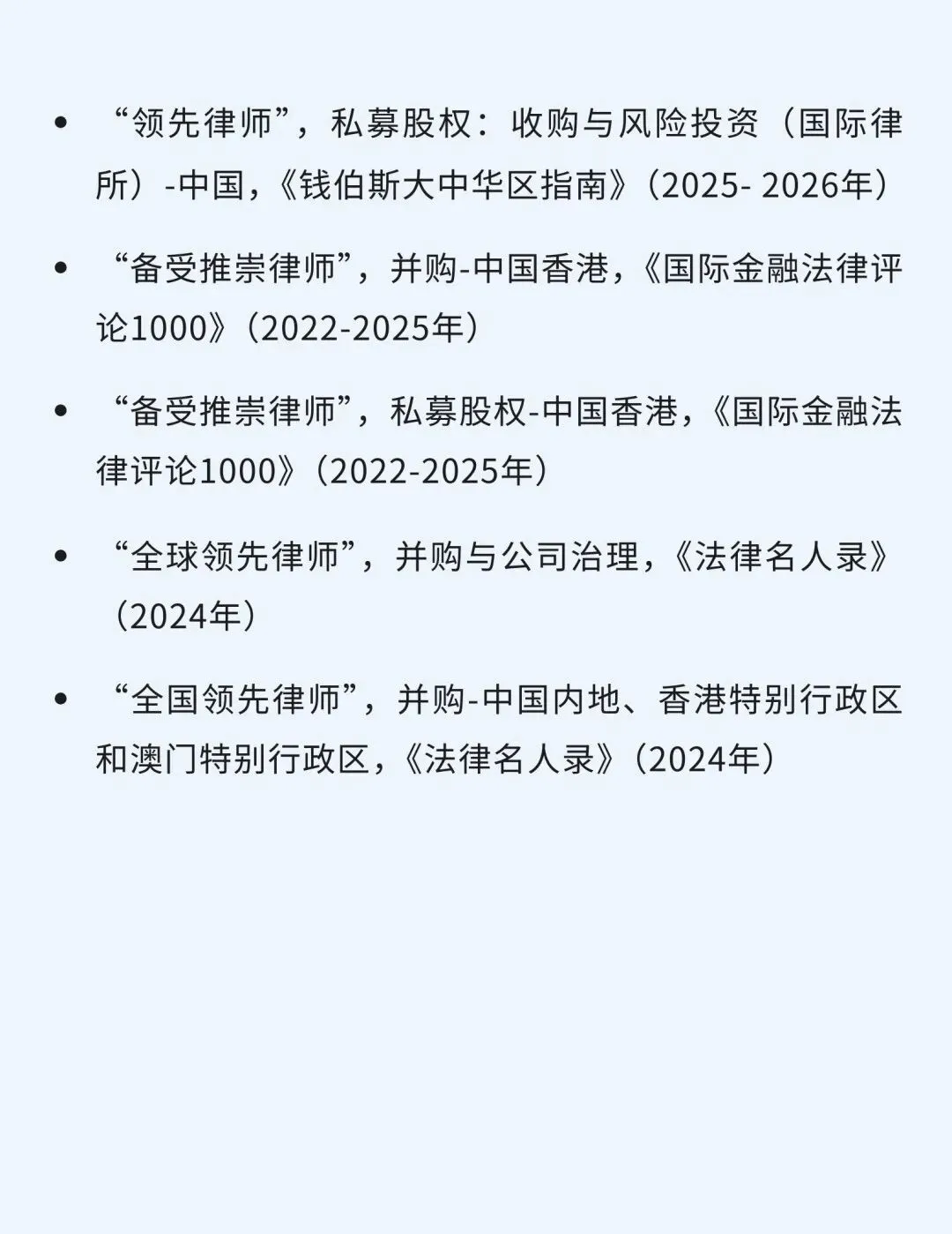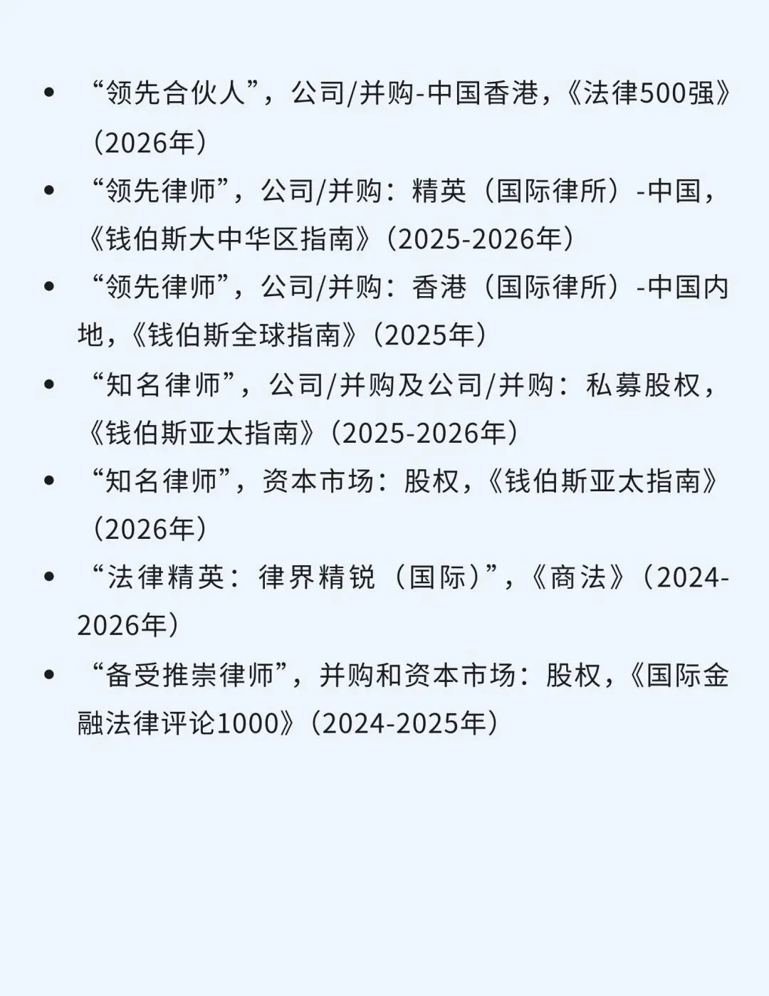 凯易团队持续在国际权威法律评级机构的排名中位于领先地位,团队及交易亦荣获多项法律大奖,深受客户及市场的认可。