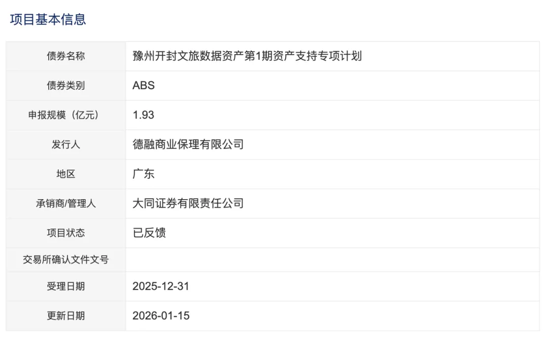 2025年12月31日,深交所受理“豫州开封文旅数据资产第1期资产支持专项计划”,发行规模1.93亿元。本项目系全国首例文旅数据资产证券化,首期规模虽然不大,但在扩大内需大背景下对全国庞大的文旅产业和众多文旅企业具有很好的示范效应。近年来,秉承“八朝古都”深厚历史底蕴和丰富多彩的地方文旅资源,开封文旅已经打造了有清明上河园、万岁山武侠城等多个海内外知名的文旅地标,尤其是在新潮IP方面,开封万岁山实景演出“王婆说媒”几乎成为这方面的顶流,在实景消费和数字流量两个方面都表现靓眼。2025年12月28日,开封文旅数据产品——万岁山实景演出“王婆说媒”游客数据产品在深圳数据交易所正式上市,这是河南省上市的首个文旅数据产品。同时也可借此向南方沿海地区宣传、推介开封文旅品牌,并有意向吸引南方的婚庆品牌企业到场,为开封市拉长和完善婚庆产业链条营造良好氛围此前在年初,开封市文化旅游投资集团有限公司(以下简称开封文投集团)的数据资源“开封文旅游客订票及入园信息”正式在郑州数据交易中心登记挂牌。据了解,此款数据资源覆盖开封市城墙内多个景点,包含游客订票数据、入园数据和停车场数据等关键信息,为后续加工成更具价值的数据产品提供了丰富素材,能够助力景区实现高效的实时客流监控,优化景区管理,提升游客游览体验。通过对数据的深度挖掘与分析,还能为景区运营提供科学的决策依据,为智能景区系统的开发提供强有力的数据支撑,进而推动开封文旅产业向智能化、数字化方向加速迈进。一般而言,文旅集团数据资产包括游客画像、实时客流数据、游客行为轨迹、游客满意度评分、经营数据、订单数据、停车数据、会员数据、OTA渠道数据、交通流量、门票销售数据、社交媒体舆情、天气数据、视频监控、舆情数据、环境监测、设施使用情况、营销活动效果、能耗监测数据、应急事件记录、供应链数据等多维度数据。不同于医疗、智慧停车等领域,文旅产业的轻资产属性使其融资难度更大,但文旅产业全链条数据(如智能商业生态系统、商户经营数据、游客消费行为数据等)同样具有非常成熟的应用场景,数据资产入表和登记后,不仅可作为数据资产获取银行质押贷款和进行资产证券化融资,还能衍生出景区游客画像、商户金融风控等数据产品。从多地案例看,文旅数据资产的三大价值逐渐凸显:提升运营效率、挖掘商业潜能、拓宽融资渠道。近年来,江苏、浙江、江西、青海、陕西、福建、湖北、河南等多个省市地区纷纷挖掘丰富文旅相关数据资源,开展数据入表和质押融资,积累了丰富庞大的文旅数据资产,下一步的数据资产证券化、产业化在客观上有相当巨大的潜力和需求。PS:您有发行数据资产证券化需求,进一步了解数据资产证券化资讯或有业务咨询、专题培训需求欢迎留言或+V:yinsrbay联系。