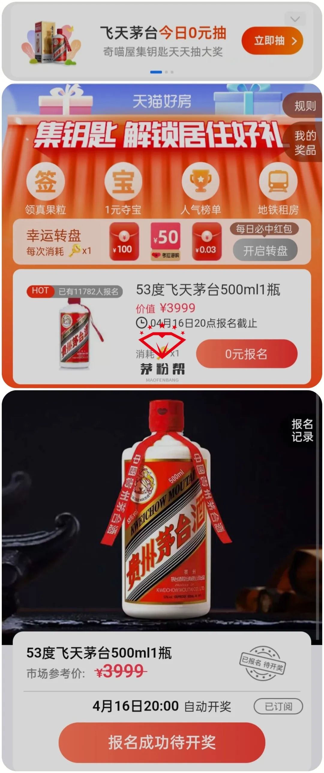 活动入口:打开支付宝首页有活动入口,没入口的搜索天猫好房最下方菜单-抽红包页面即可0元参与活动!!
