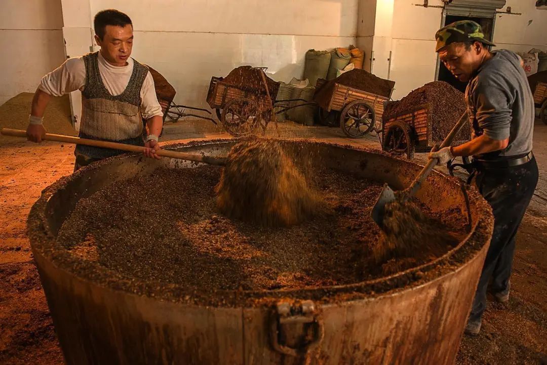 2、立渣:新投产时,渣子经过拌料、蒸煮糊化、加糖化发酵剂,第一次酿酒发酵的程序。4、粮糟:在浓香型白酒生产中,新原料于醅混合的原料。6、回糟:酒醅蒸酒后,不加入新的渣子,加糖化发酵剂,再次发酵的醅子。9、大渣、二渣和三渣:在配醅时加入较多新原料入窖发酵的物料。10、小渣:又称粮糟。在配醅时加入少量新原料的物料。11、排:从新原料投料开始至蒸酒结束的一次生产周期。12、掉排:系一排或连续几排的生产结果与正常相比,少出或不出酒的现象。13、窝酒:由于装甑不妥,酒气不能均匀地穿过酒醅,造成部分酒醅中的酒蒸不出来。14、坠甑:装甑蒸酒会死,由于装甑不妥或蒸汽突然减少等原因,使甑内酒醅下陷,造成醅中的酒蒸不出来,或酒度低,流酒尾的时间拖长的现象。15、大火追尾:蒸酒将结束时,加大进蒸汽量或加大火力,蒸出酒醅中残余的酒和酸。16、地温:为掌握下曲和入窖的温度,参考酿酒车间通风干燥处接触地面放置的温度计的温度。17、封窖:以专用的粘土或塑料布抹在(压在)窖面的发酵物料上,将窖面密封,隔绝空气以进行发酵的操作。18、踩窖:待发酵物料进入窖后,人工适当踩压,以免发酵物料间存留过多的空气,并防止过分地塌陷的一道工序。19、黄水:发酵过程中,逐渐渗于窖底部的棕黄色液体。20、闷头量:为使出窖后的物料充分吸水膨胀而泼入的热水。21、老五甑法:将窖中发酵完毕的酒醅分成五次蒸酒和配醅的传统操作法。在正常情况下,窖内有四甑酒醅,即大渣、二渣、小渣和回糟各一甑。23、续渣法:原料与发酵好的酒醅混蒸,即蒸料糊化与蒸酒在甑内同时进行的奥做方法。24、辅料清蒸:为消除稻壳等辅助填充料的异杂味和杂菌的操作过程。成品及半成品