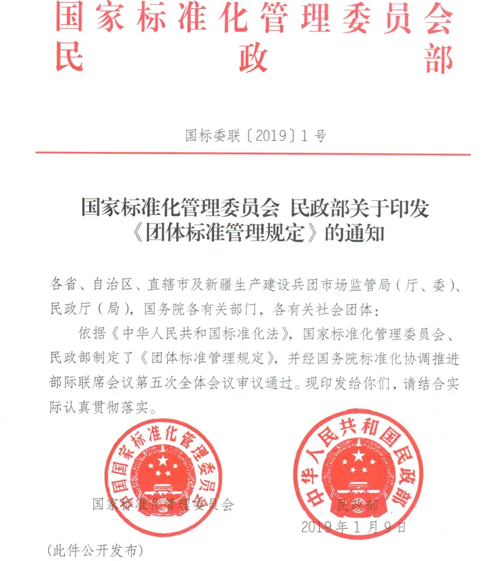 依据《中华人民共和国标准化法》,国家标准化管理委员会、民政部制定了《团体标准管理规定》,并经国务院标准化协调推进部际联席会议第五次全体会议审议通过。