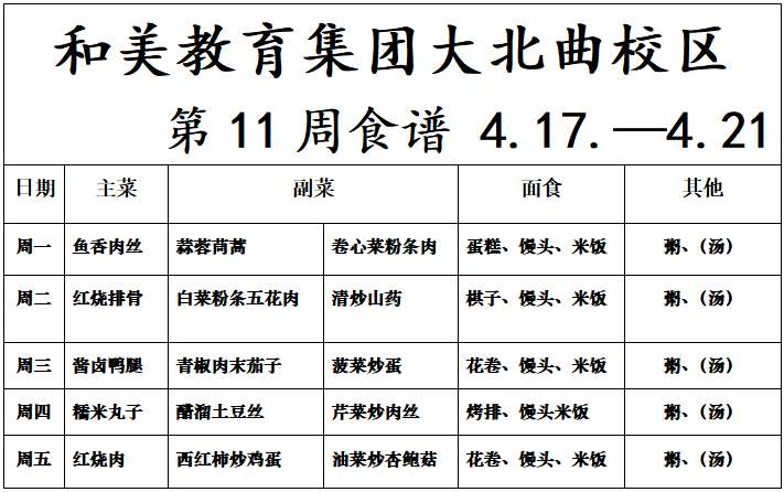 【校园食谱】“食”刻相伴—和美教育集团大北曲小学第11周食谱
