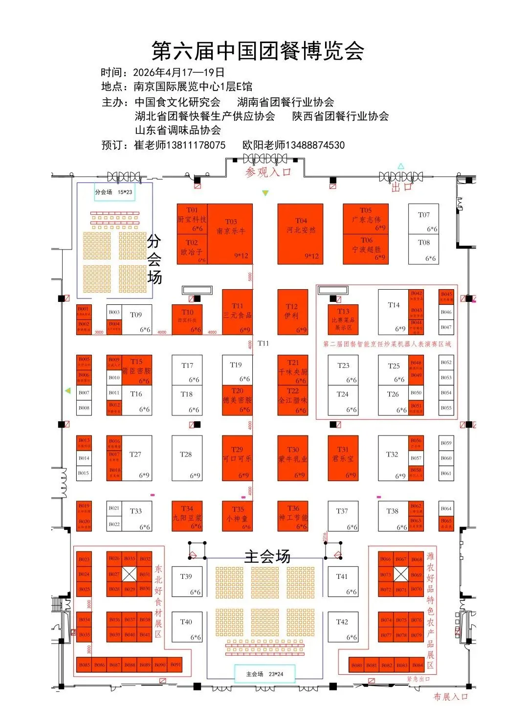 第六届展位图,预订请联系欧阳老师(红色已预订)