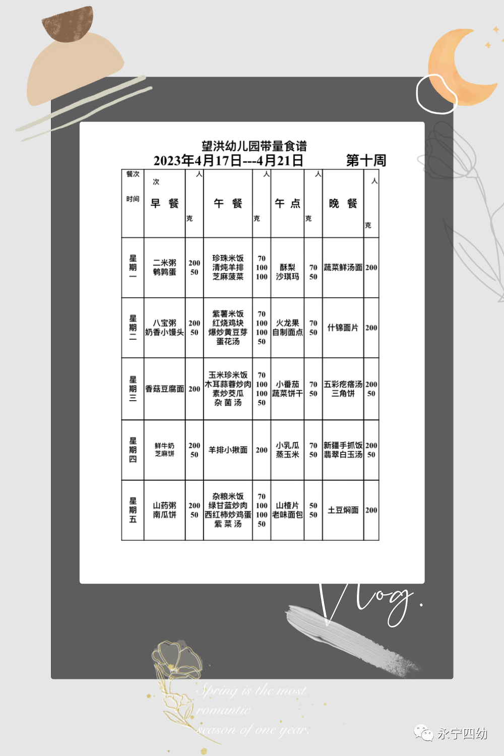 望洪幼儿园第九周带量食谱精彩回顾及第十周预告