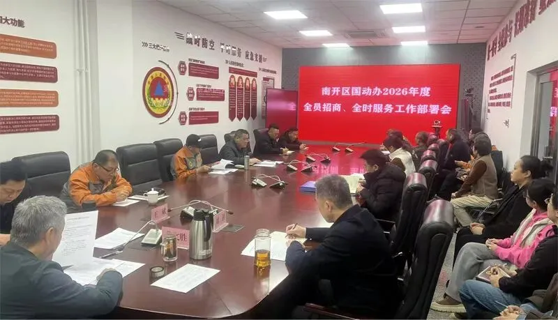 日前,南开区国动办召开2026年全员招商、全时服务工作部署会议,传达学习贯彻区招商引资大会精神,部署全年招商引资重点任务,动员全办上下统一思想、凝聚共识,以招商引资工作新突破助推南开经济社会高质量发展。