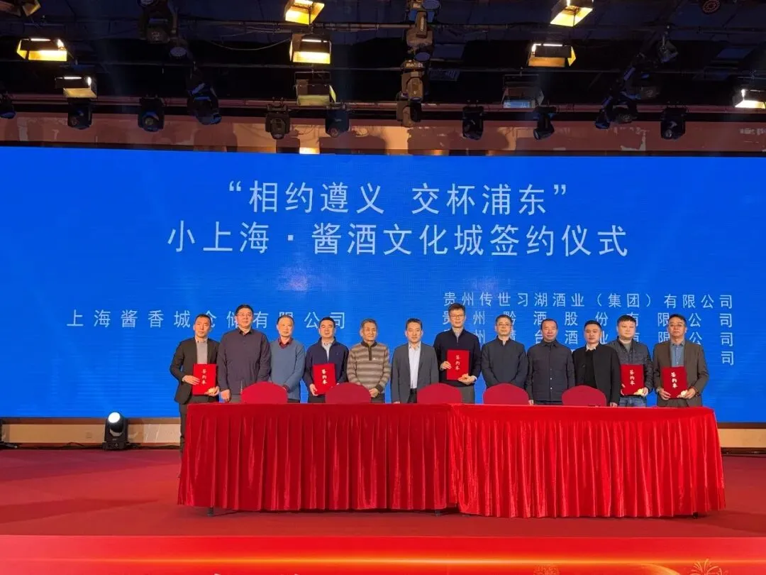在签约和展示环节,上海酱香城仓储有限公司与习湖酒业、黔酒股份、慧台酒业、遵醇酒业等4家遵义优质酒企签订合作协议,并举行遵义酱酒走进上海封坛仪式,积极探索酱酒产业市场化、品牌化的合作新路径,进一步拓宽酱酒在长三角地区的销售渠道。