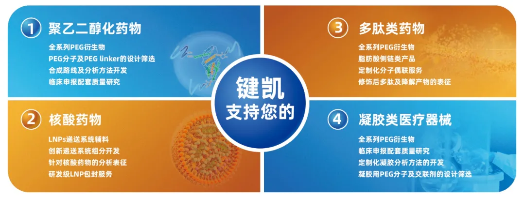 北京键凯科技股份有限公司(股票代码:688356,证券简称:键凯科技)成立于2001年,是一家常年专注于药物递送领域的高新技术企业,2020年8月26日于上交所科创板首发上市。键凯科技是致力于医用药用聚乙二醇衍生物产业化的高新技术企业,是国内外为数不多能进行高纯度和低分散度的医用药用聚乙二醇及活性衍生物工业化生产的公司。键凯科技拥有高纯度PEG原料研制技术平台、医用药用PEG材料平台、PEG医药应用创新平台等3个核心技术平台,实现了从PEG原料、PEG衍生物到PEG修饰药物研制的全面覆盖。目前,公司已在天津开发区西区生物医药园建成占地15000多平方米的医用药用聚乙二醇衍生物的开发及产业化基地,在辽宁省盘锦市精细化工产业园建成了高纯度医用药用聚乙二醇材料的研发与全自动生产线。目前公司及子公司天津键凯科技有限公司、辽宁键凯科技有限公司均获得高新技术企业认证,是国内外为数不多能进行高纯度和低分散度的医用药用聚乙二醇及活性衍生物工业化生产的公司,是国内规模化生产高质量医用药用聚乙二醇及其衍生物领域的先行者之一,也是主要新兴参与者。键凯科技已支持国内8款及海外2款已获批上市的聚乙二醇修饰药物、1款疫苗类药物与国内5款及海外11款已上市的聚乙二醇医疗器械。同时,公司还支持了多家国内国际药企及医疗器械企业的90余个处于临床阶段的项目,产品覆盖600+国内外高校及科研机构。天津: