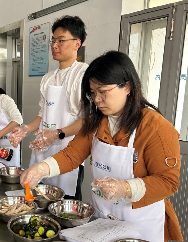 “大家先看我操作,注意步骤和配比,到时吃起来会更加入味。”柠檬酸辣脱骨凤爪的制作看似简单,但想做出“甜、酸、辣”具备的口感,每个环节都不能忽视,酱黄瓜配料虽少,但每种配料的配比需要恰当拿捏。看着酸甜可口的无骨凤爪和爽口鲜脆的酱黄瓜在厨师手中一步步制成,早已跃跃欲试的学员们迫不及待动手制作,去甲、焯水、脱骨、搅拌、冰镇……清脆的碗碟声、筷勺的碰撞声、轻快的笑语声交织成欢快的乐曲。