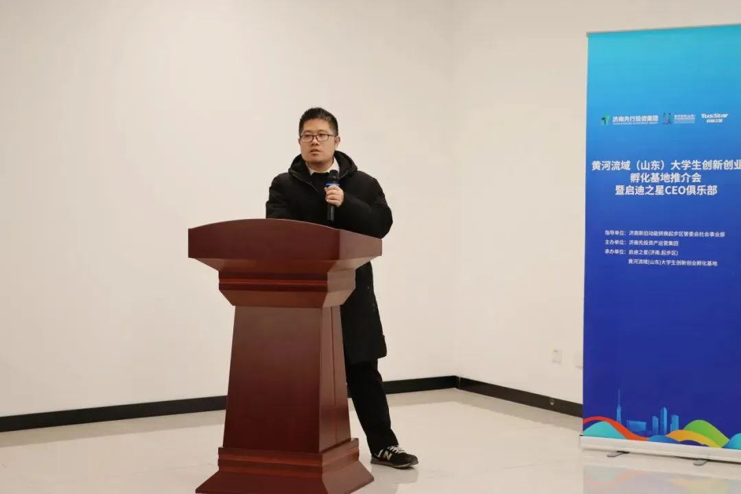 1月26日,“黄河流域(山东)大学生创新创业孵化基地推介会暨启迪之星CEO俱乐部”活动成功举办。活动由济南起步区管委会社会事业部指导,济南先投资产运营集团有限公司主办,启迪之星(济南·起步区)、黄河流域(山东)大学生创新创业孵化基地(简称“黄河创立方”)共同承办。