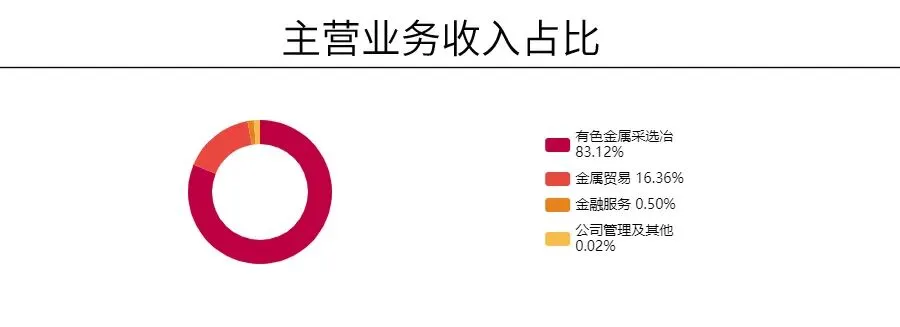 公司主营业务贯穿矿产全产业链,具体包括铜、铅、锌、钼、镍、铁和钒的采选、冶炼和贸易,同时从事稀有金属(如黄金、白银)以及非金属产品的生产和贸易。通过技术创新和改革,公司形成了稳定的矿山运营体系,并实现了从矿山采选到有色冶炼、金融贸易和盐湖化工等多领域的产业链布局,成为中国西部地区重要的矿业企业。