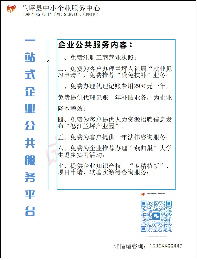 兰坪县中小企业公共服务窗口平台(以下简称“窗口平台”)是根据国家工信部、云南省工信委的统一部署,由怒江州工业和信息化委员会主管,采取“政府引导、市场运作”的模式建设运营,面向全州中小企业提供公益性、扶持性全方位综合服务的公共服务平台,是云南省中小企业公共服务平台网络的组成部分。窗口平台从兰坪县中小企业的发展现状和服务需求出发,整合各类优质服务资源,搭建一站式综合服务平台,聚焦怒江中小企业发展需求,加强部门协同、上下联动,发挥各级中小企业公共服务体系线上、线下服务优势,组织各类服务资源和服务力量,深入企业、园区,推出内容丰富、形式多样的服务活动和针对性强、实效性好的服务举措,以服务助企为抓手,统筹推进政策惠企、环境活企、创新强企、人才兴企、法律护企,助力中小企业稳定预期、激发活力,推进高质量发展。