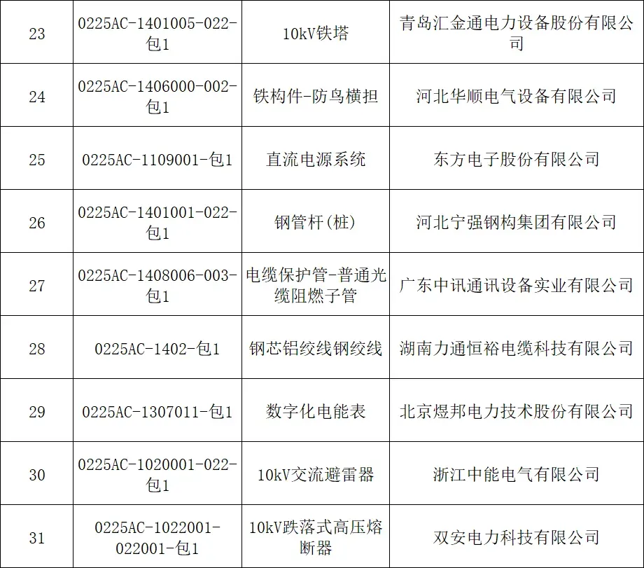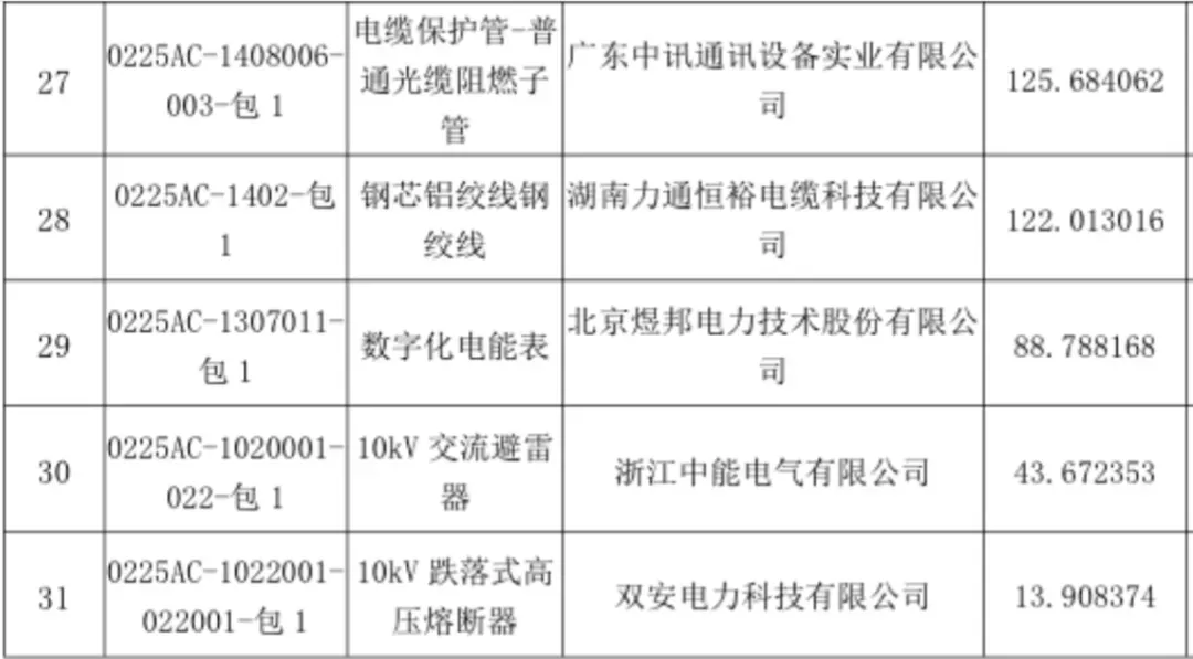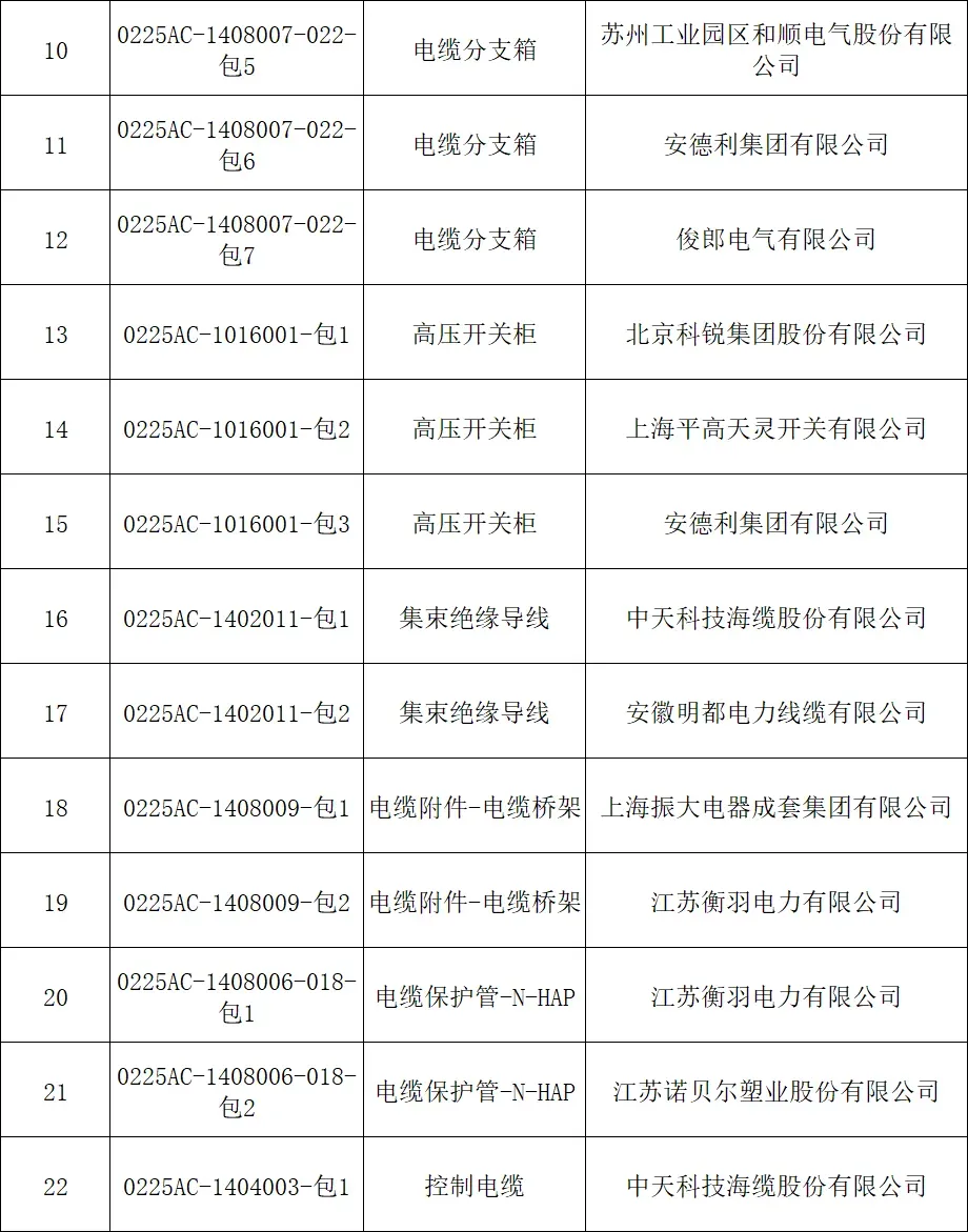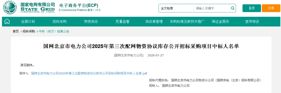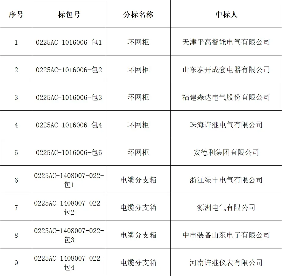 国网北京市电力公司2025年第三次配网物资协议库存公开招标采购项目中标人名单