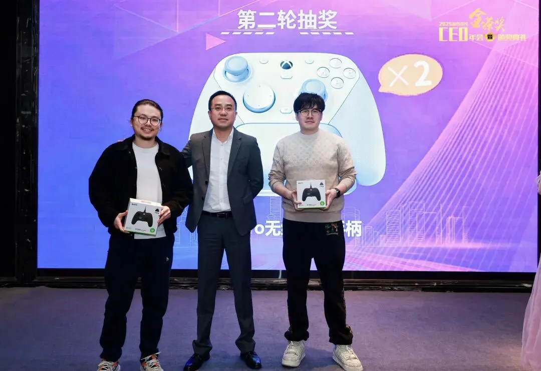 下午对接会圆满落幕之后,紧接着举行了金茶奖的CEO答谢晚宴暨会员晚宴。此次晚宴吸引了来自全国各地50多家会员企业参与。在晚宴上,伴随着美妙的音乐,大家举杯畅饮,交流热烈,气氛十分活跃,抽奖环节也让大家十分期待,最后恭喜五位会员分别抽中了超新星无线游戏手柄 、G7 Pro 无线游戏手柄 、大疆Neo2无人机。晚宴在欢声笑语中落下帷幕,大家纷纷约定,在下一次游茶会的活动中再次相聚,共同期待未来更多的合作与交流。在此再次向游茶会所有社群会员表示感谢,感谢你们对游茶会的大力支持与陪伴。我们会继续努力,与各位一同打造属于游戏行业最具影响力的创业者社群。在未来的日子里,我们将继续加强与各位会员的合作联系,促进会员相互学习与帮助,增强会员组织的凝聚力。愿2025年我们继续携手共进,铸就辉煌!