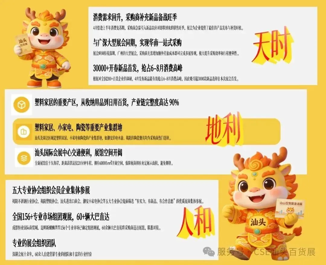 2026汕头日用百货展将于2026年4月21-23日在汕举办。展会以百货为基础,是展示潮汕地区不锈钢、餐厨用品、塑料、小家电、陶瓷等产业延伸的全链条展会。立足潮汕核心产业带,惊耕华南市场,辐射全国级东南亚,聚合国内外全渠道买家。以源头工厂直展模式,为厂商构建精准高效的商贸对接,依托潮汕日用百货产业基地优势,通过“展+厂+会”联动模式,打通从产业带源头到终端市场的全链条资源展会平台。