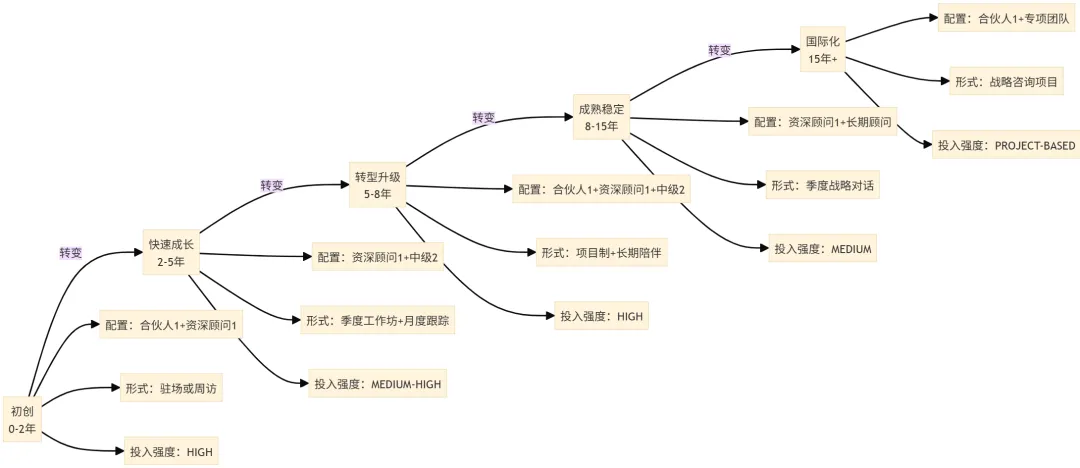 战略匹配度评分≥85分 长期合作潜力强 行业代表性与影响力大 创始人/管理层开放度高 - 承诺:指派资深顾问长期驻场或定期访问
