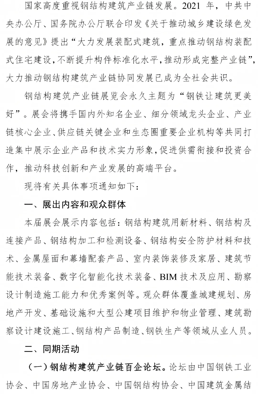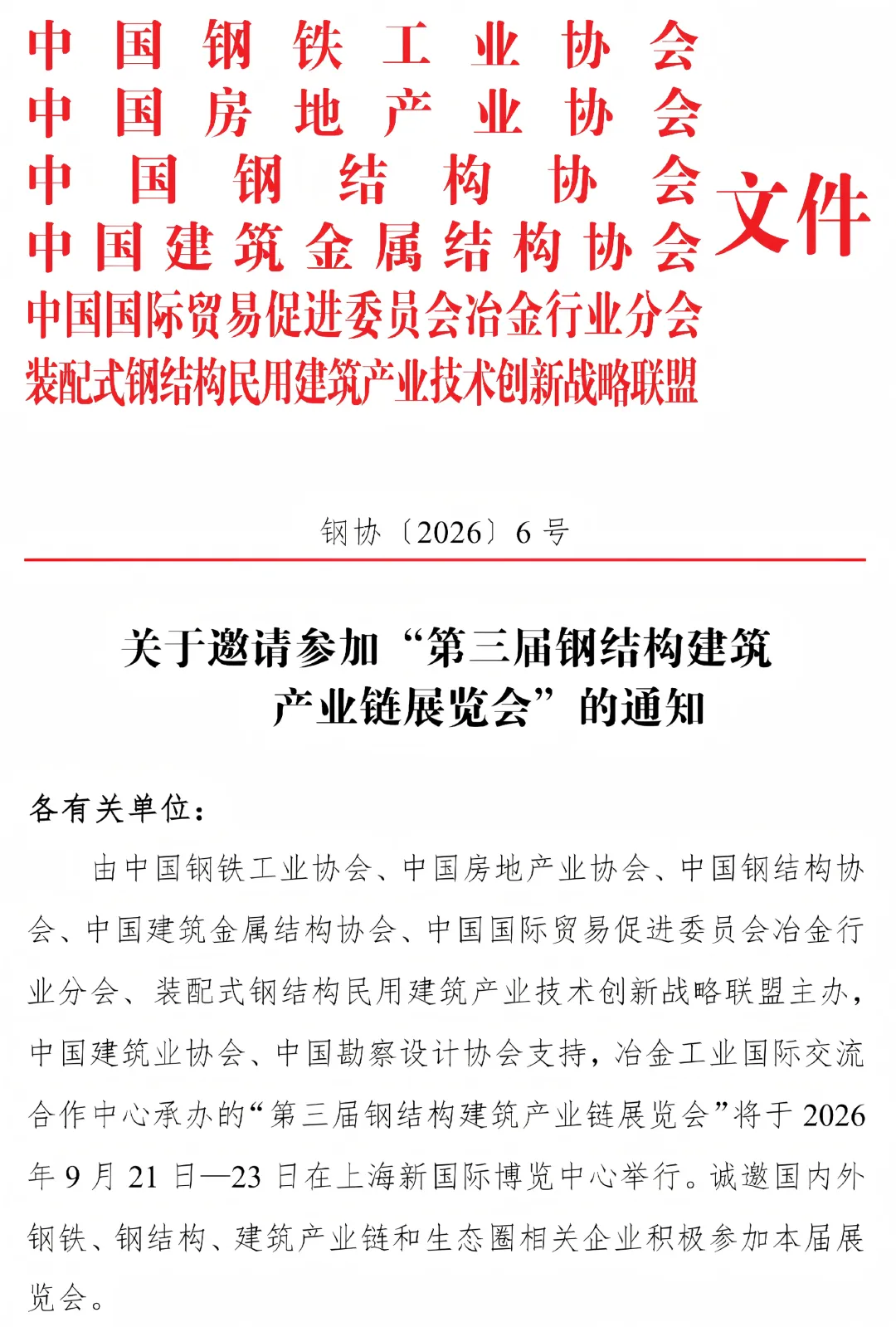 关于邀请参加“第三届钢结构建筑产业链展览会”的通知