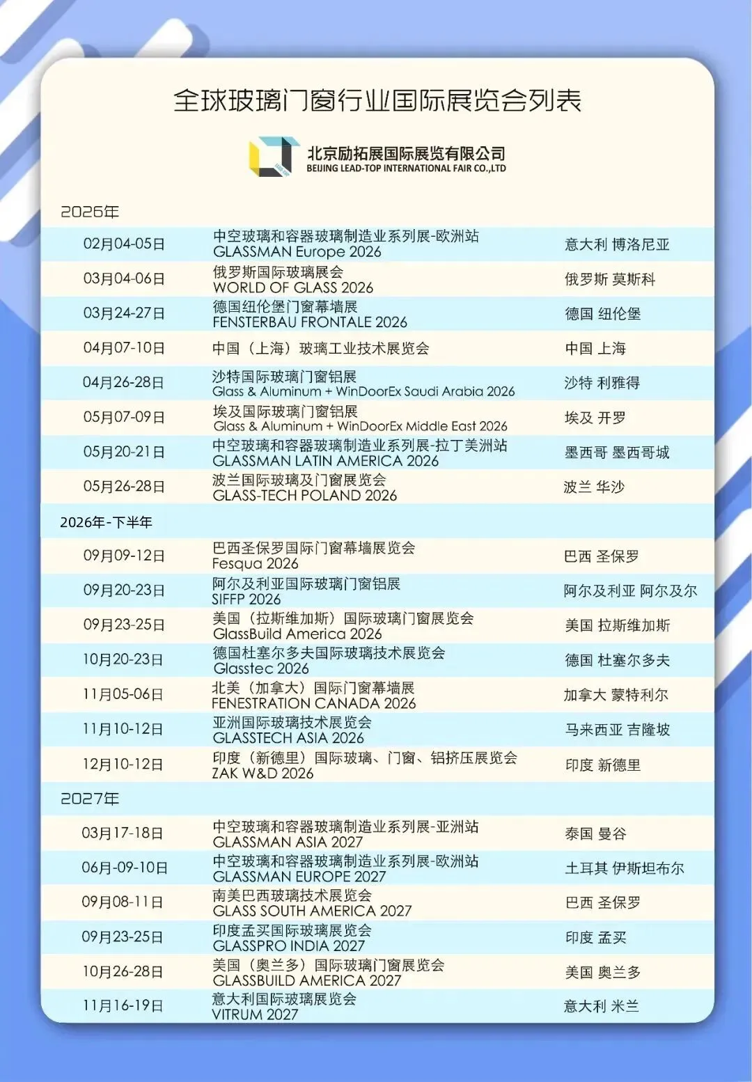 展会名称:2026年俄罗斯莫斯科国际玻璃工业展
