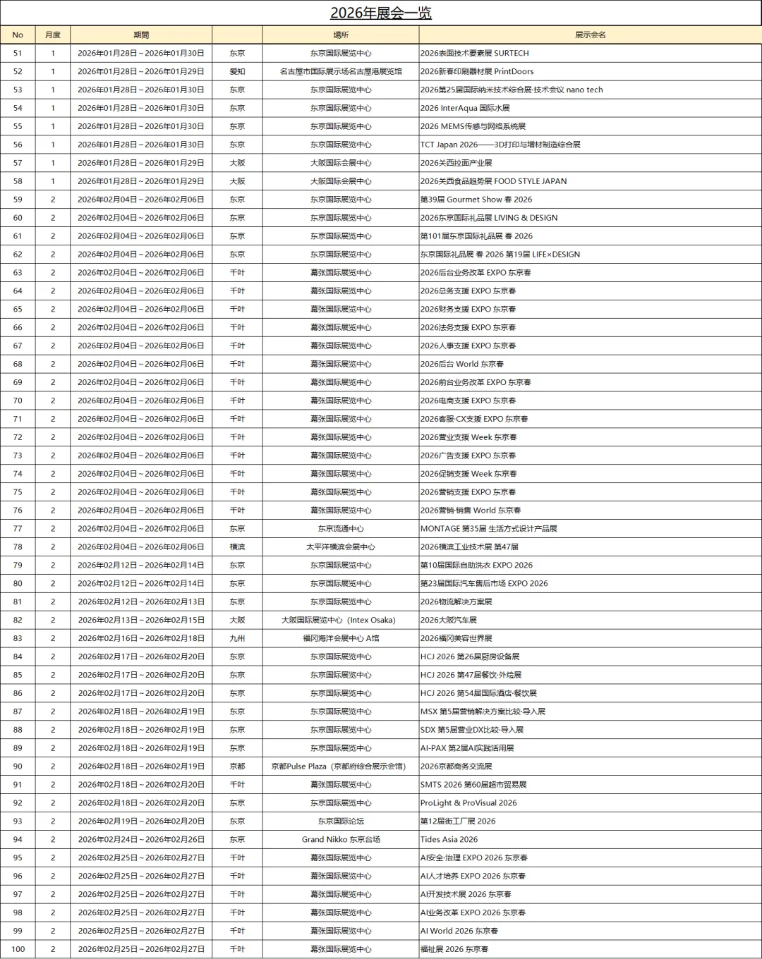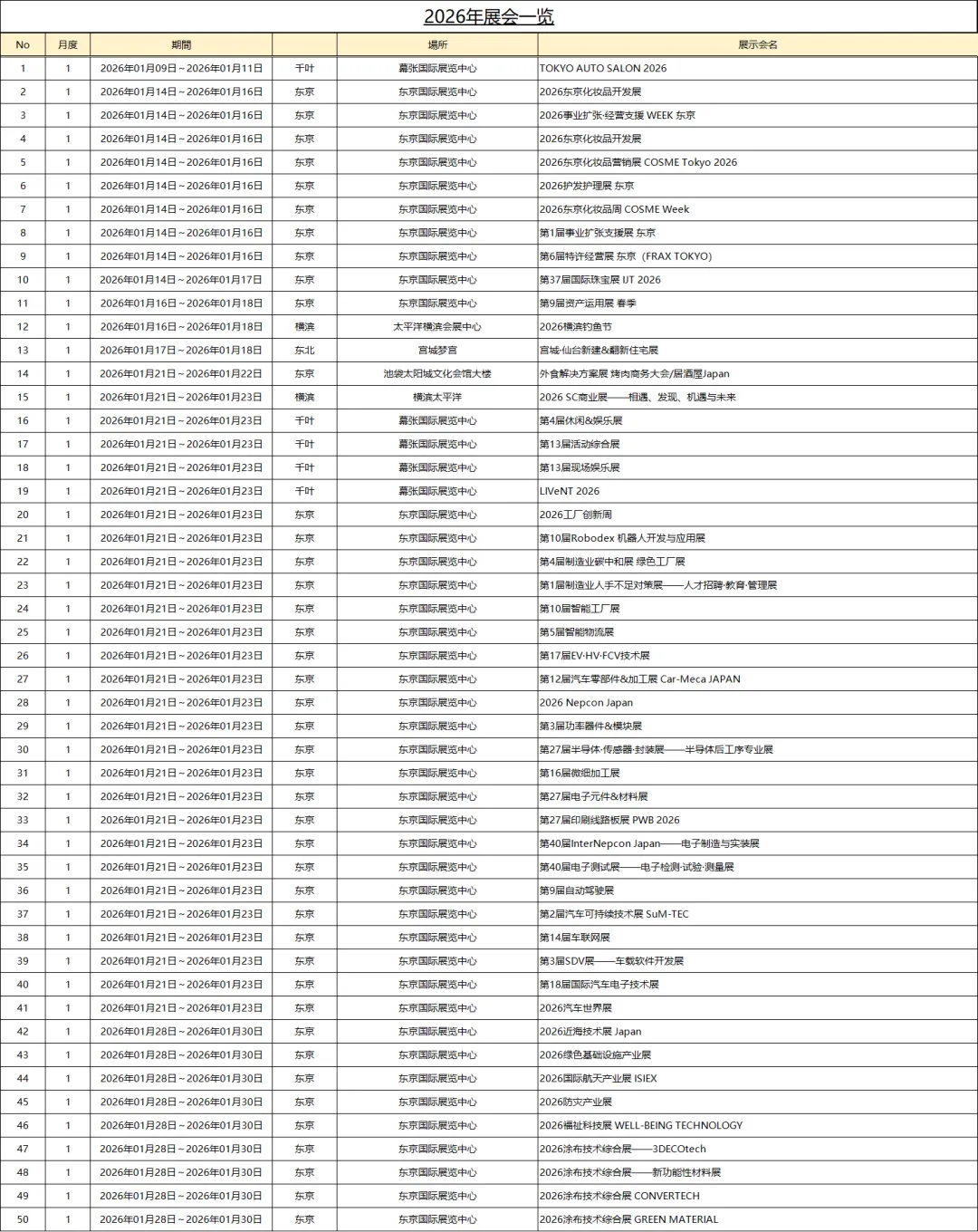 日本在精密制造、自动化、机器人等领域持续领先,相关展会是观察技术落地与产业升级的直观平台。