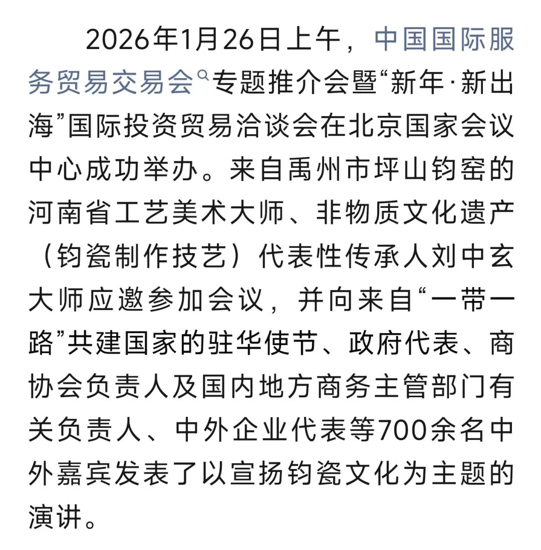 坪山钧窑钧瓷大师刘中玄在中国国际服务贸易交易会宣扬钧瓷文化