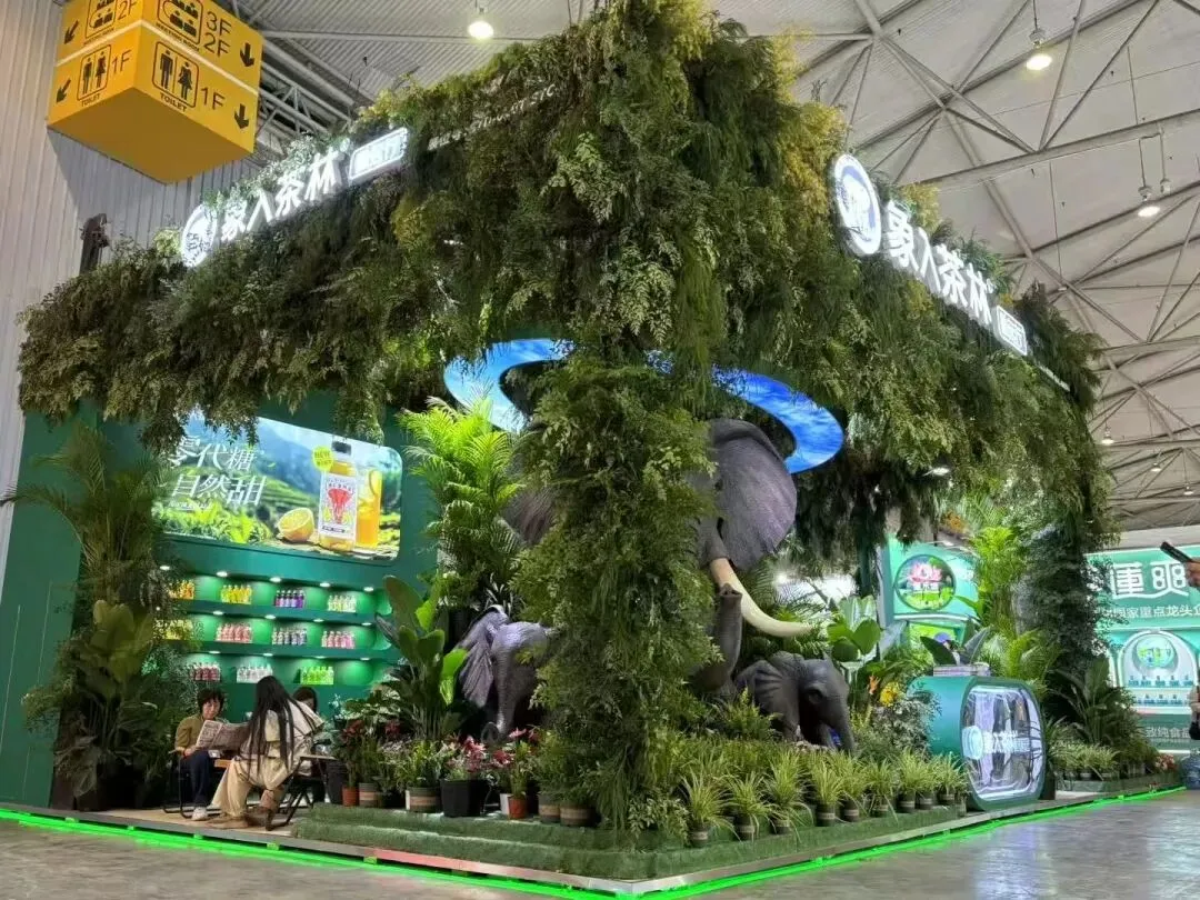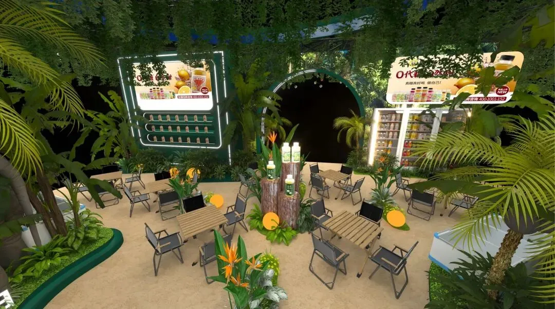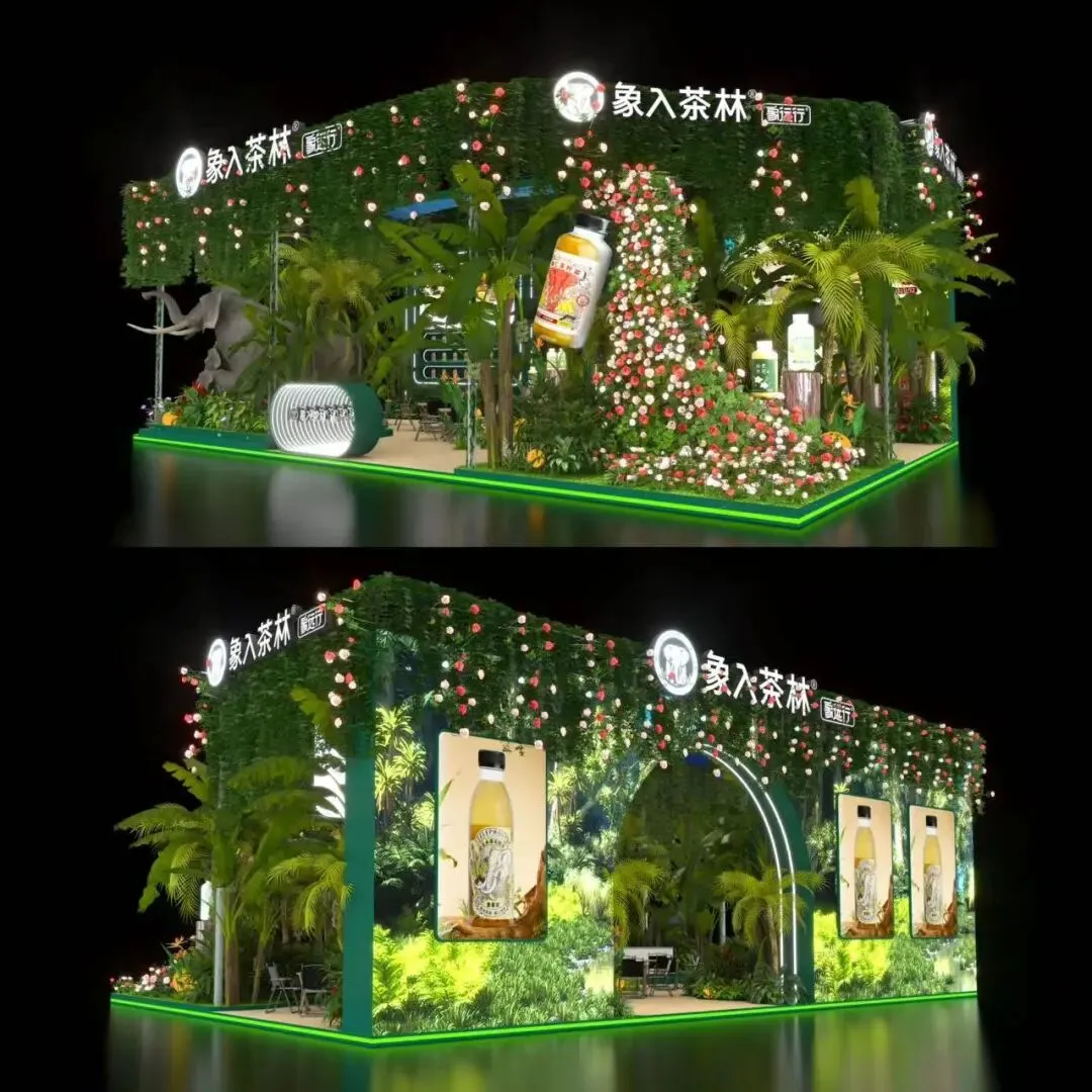 场景即体验:当消费者在“雨林”里品尝茶饮,自然会把“新鲜、自然”的感受与品牌划上等号,实现了体验与认知的深度绑定。记忆点即流量:独特的场景设计让这个展位成为全场焦点,吸引了大量人流驻足,直接提升了品牌曝光和商务洽谈的效率。