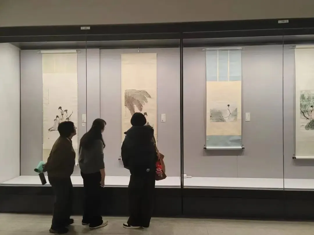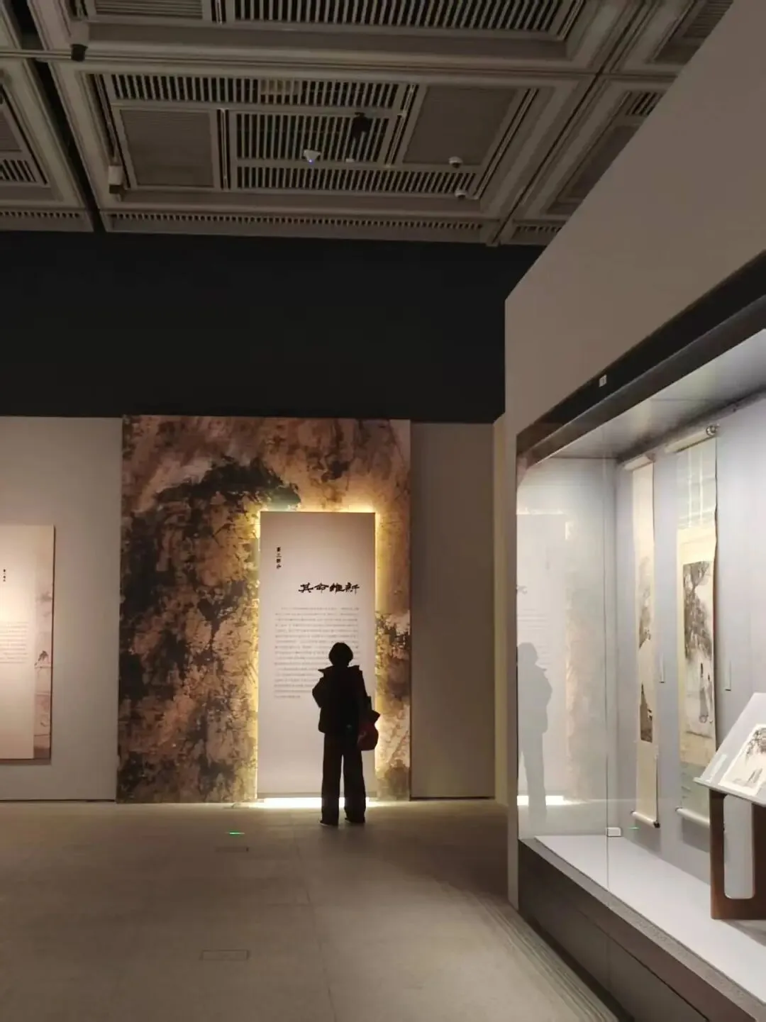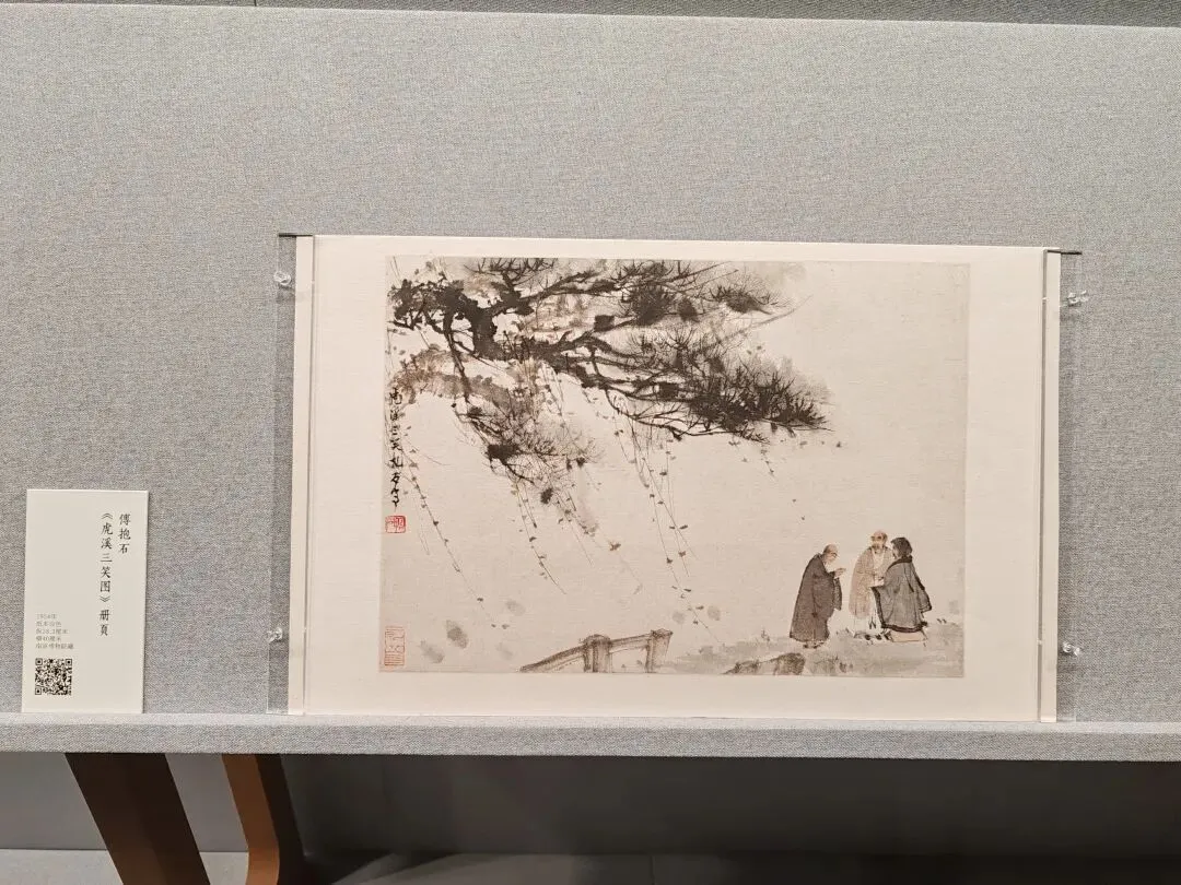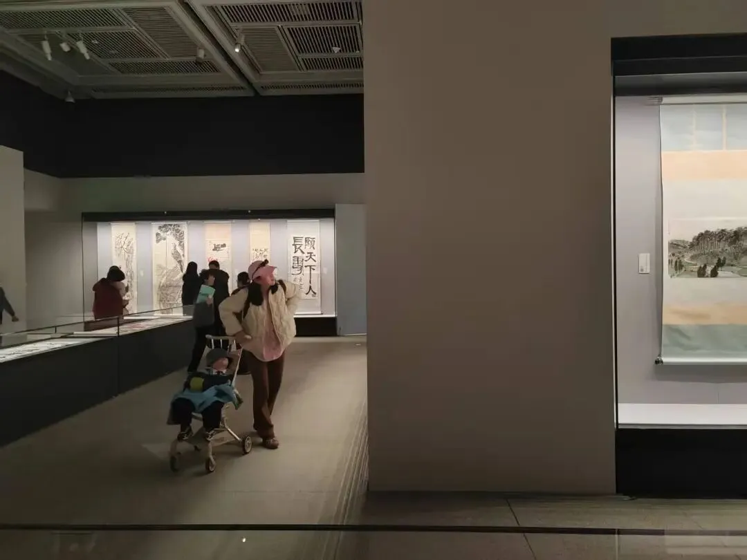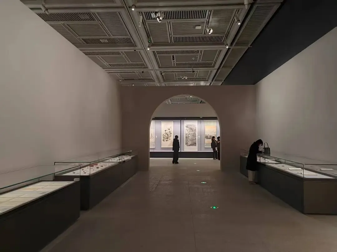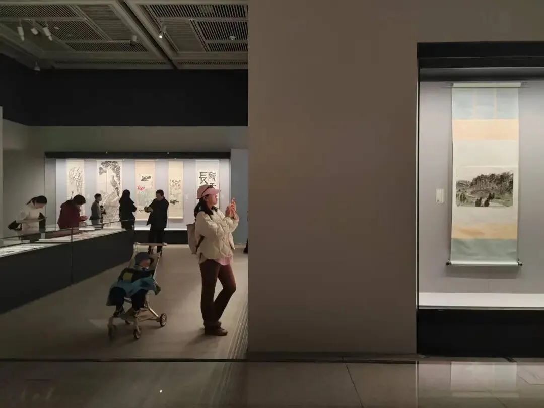 走在街上,微冷。商贩们,早早地就摆开摊位,艰难地招揽着生意。 在东风路与德雅路的十字路口,远远地,可以看到常绿行道树后,露出了湘博半遮半掩的侧脸。 小小的孩童,坐在手推车上,和我们一起等着红灯,准备过马路。 进了湘博,现在楼上往外看,是鲜活的当下,21世纪的长沙和中国。 在一楼的北侧,就可以看到《南北有“二石”》的巨型宣传立牌。 在展厅的门口,从左往右,就立着三块形状各一的立牌。 序厅是开放型的,没有买票的观众,也能够看到展览的序言:“二石”艺术年表。 把齐白石和傅抱石两位20世纪最伟大的两位中国画家放在一起比较展出,这应该是第一次。 把他们放在一起展出的逻辑,是他们都是20世纪中国画创新,贡献最卓著的几位大家之一。 在上个世纪,在中国画创新上面,能与他们并肩的,大概只有吴昌硕、张大千、徐悲鸿和黄永玉等寥寥数人。 讲的是白石老人“衰年变法”的历程和他的“红花墨叶”大写意花鸟画。 讲的是白石老人通过对前人的继承与扬弃,通过对自然与生活的观察,在构图与笔墨上多有变革,最后形成了他独特的富有生活气息与神韵的艺术表达。 在这一部分的结尾,有一个观众与AI进行互动的小环节。 这一部分,讲的是齐傅二人的篆刻艺术。展出的是他们的印章。 第三部分叫:《其命维新》。“其命维新”,是傅抱石的一枚印章。 所以,这一部分,是说的傅抱石的艺术创新活动与成就。 讲的是傅抱石独创“抱石皴”,从中国古人古诗、日本绘画和时代精神中创新山水画法的过程与成就。 这一部分是展示的傅抱石与齐白石在新中国成立后,与时俱进,进行创新的历程及成果。 最近几年,我也参观了二三十家博物馆。我发现湖南省博物馆有一个与众不同的特点,或者说优点。 就是,绝大多数的博物馆,不会凸显策展中的具体的工作人员,而只是让笼统的某某博物馆某某中心这个集体的名义出现在公众的面前。 但是湖南博物馆会把策展中的每一个工作人员的名字,展示在公众面前。个人的贡献与荣耀,领导和集体不会剥夺。 这是一个非常好的传统,折射出“眼睛中有人”的人文主义精神。 如果,能像其他博物馆一样,摆放一些蒲团或者坐垫就好了。 展厅的出口旁,有一个小小的文创商店,店子和商品,都很精致。 展厅中的插花,都还有点意思。都能与相关单元的意旨贴合。 观众们走在展厅里,也融入了展陈之中,变成了画中的人物。 我挑选了一些我喜欢且认为重要的展品,拍摄下来,列举如下: 艺术品,尤其是书法与绘画,是需要到现场揣摩原作的。