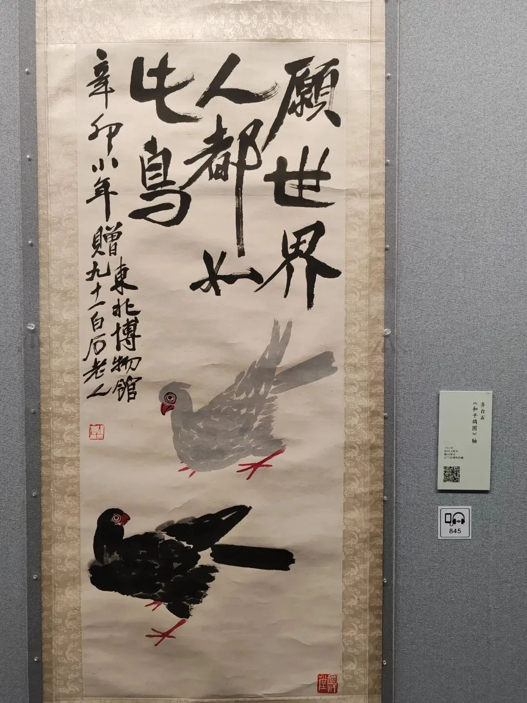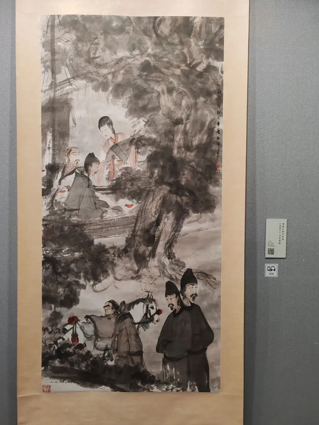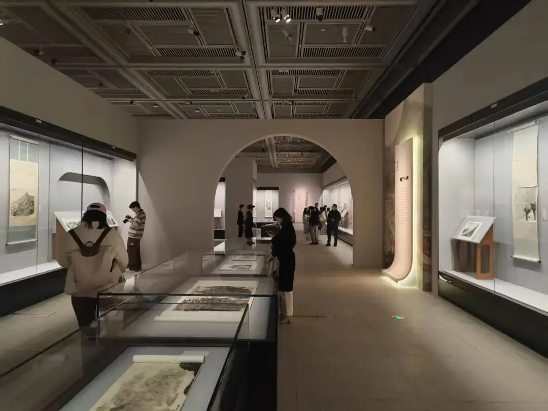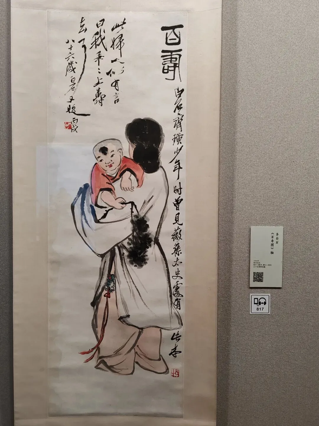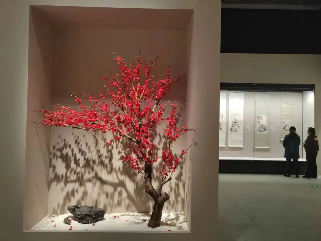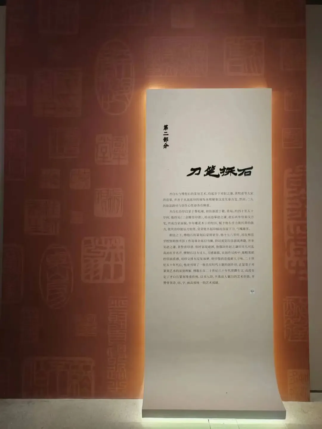 走在街上,微冷。商贩们,早早地就摆开摊位,艰难地招揽着生意。 在东风路与德雅路的十字路口,远远地,可以看到常绿行道树后,露出了湘博半遮半掩的侧脸。 小小的孩童,坐在手推车上,和我们一起等着红灯,准备过马路。 进了湘博,现在楼上往外看,是鲜活的当下,21世纪的长沙和中国。 在一楼的北侧,就可以看到《南北有“二石”》的巨型宣传立牌。 在展厅的门口,从左往右,就立着三块形状各一的立牌。 序厅是开放型的,没有买票的观众,也能够看到展览的序言:“二石”艺术年表。 把齐白石和傅抱石两位20世纪最伟大的两位中国画家放在一起比较展出,这应该是第一次。 把他们放在一起展出的逻辑,是他们都是20世纪中国画创新,贡献最卓著的几位大家之一。 在上个世纪,在中国画创新上面,能与他们并肩的,大概只有吴昌硕、张大千、徐悲鸿和黄永玉等寥寥数人。 讲的是白石老人“衰年变法”的历程和他的“红花墨叶”大写意花鸟画。 讲的是白石老人通过对前人的继承与扬弃,通过对自然与生活的观察,在构图与笔墨上多有变革,最后形成了他独特的富有生活气息与神韵的艺术表达。 在这一部分的结尾,有一个观众与AI进行互动的小环节。 这一部分,讲的是齐傅二人的篆刻艺术。展出的是他们的印章。 第三部分叫:《其命维新》。“其命维新”,是傅抱石的一枚印章。 所以,这一部分,是说的傅抱石的艺术创新活动与成就。 讲的是傅抱石独创“抱石皴”,从中国古人古诗、日本绘画和时代精神中创新山水画法的过程与成就。 这一部分是展示的傅抱石与齐白石在新中国成立后,与时俱进,进行创新的历程及成果。 最近几年,我也参观了二三十家博物馆。我发现湖南省博物馆有一个与众不同的特点,或者说优点。 就是,绝大多数的博物馆,不会凸显策展中的具体的工作人员,而只是让笼统的某某博物馆某某中心这个集体的名义出现在公众的面前。 但是湖南博物馆会把策展中的每一个工作人员的名字,展示在公众面前。个人的贡献与荣耀,领导和集体不会剥夺。 这是一个非常好的传统,折射出“眼睛中有人”的人文主义精神。 如果,能像其他博物馆一样,摆放一些蒲团或者坐垫就好了。 展厅的出口旁,有一个小小的文创商店,店子和商品,都很精致。 展厅中的插花,都还有点意思。都能与相关单元的意旨贴合。 观众们走在展厅里,也融入了展陈之中,变成了画中的人物。 我挑选了一些我喜欢且认为重要的展品,拍摄下来,列举如下: 艺术品,尤其是书法与绘画,是需要到现场揣摩原作的。