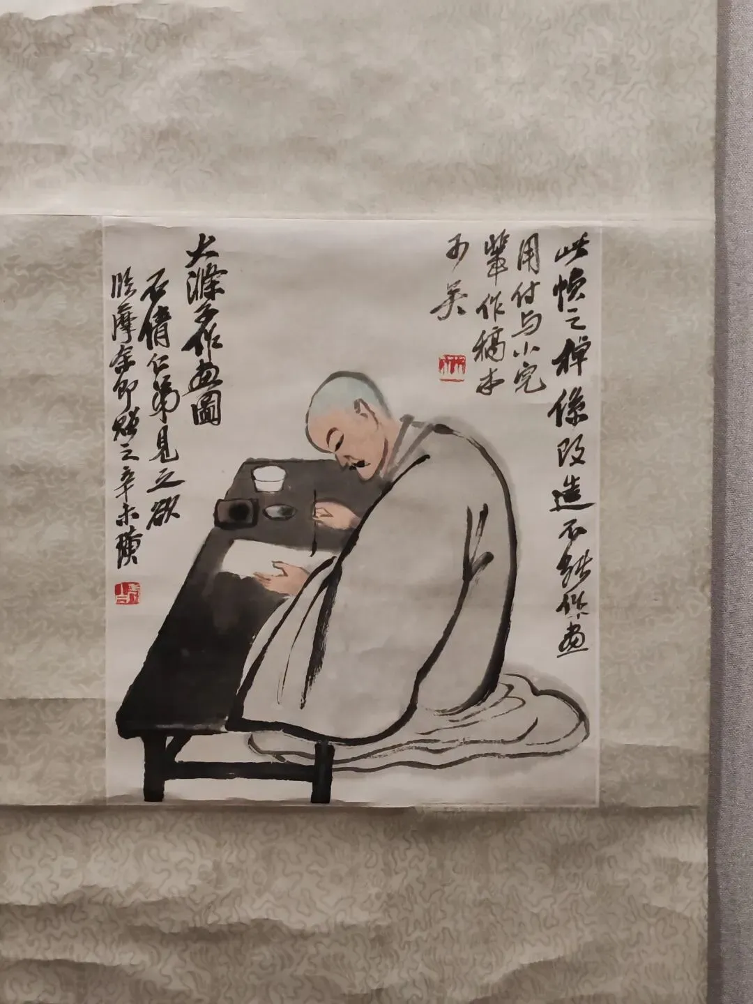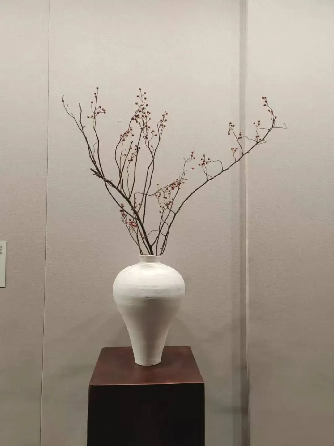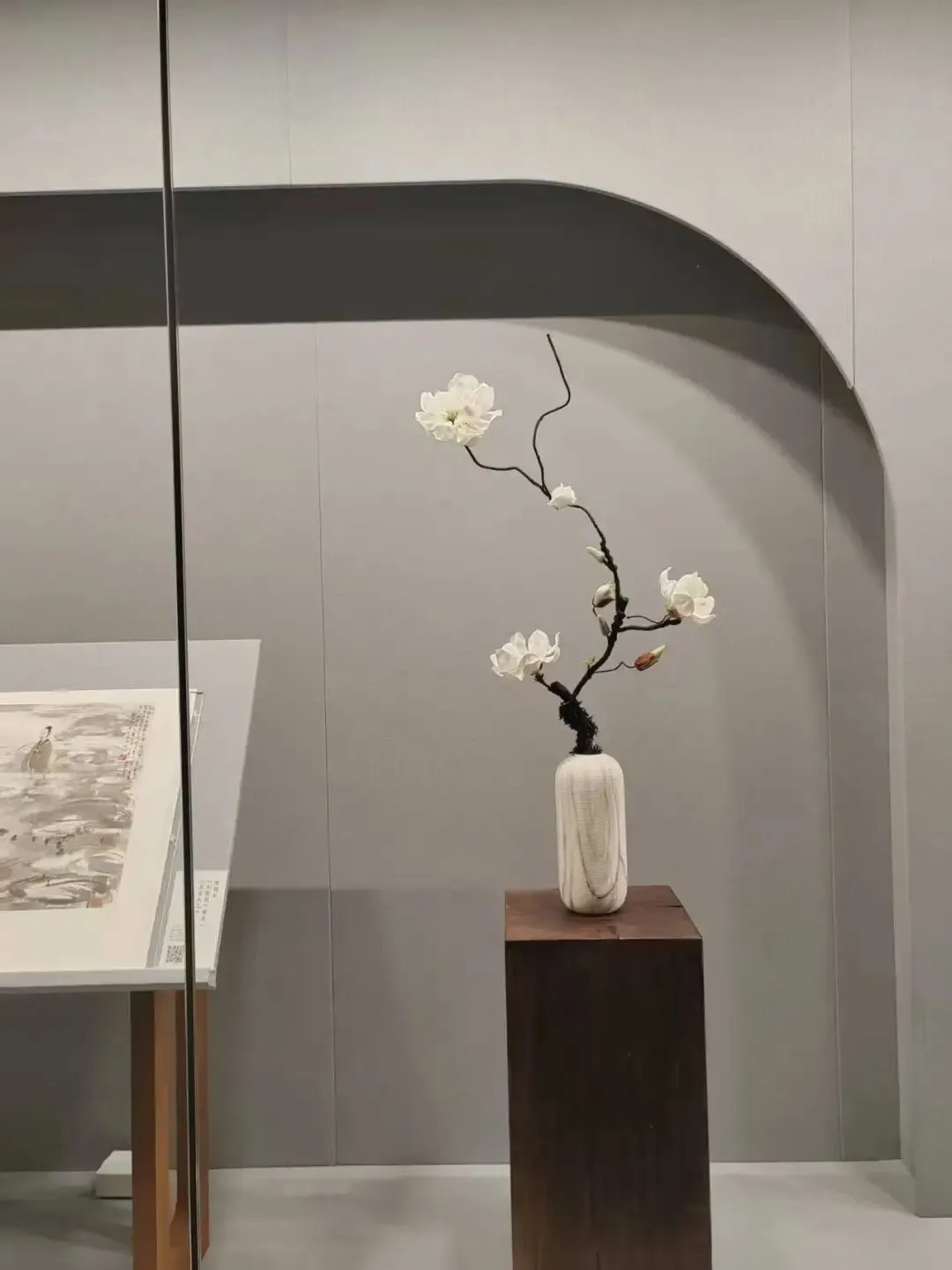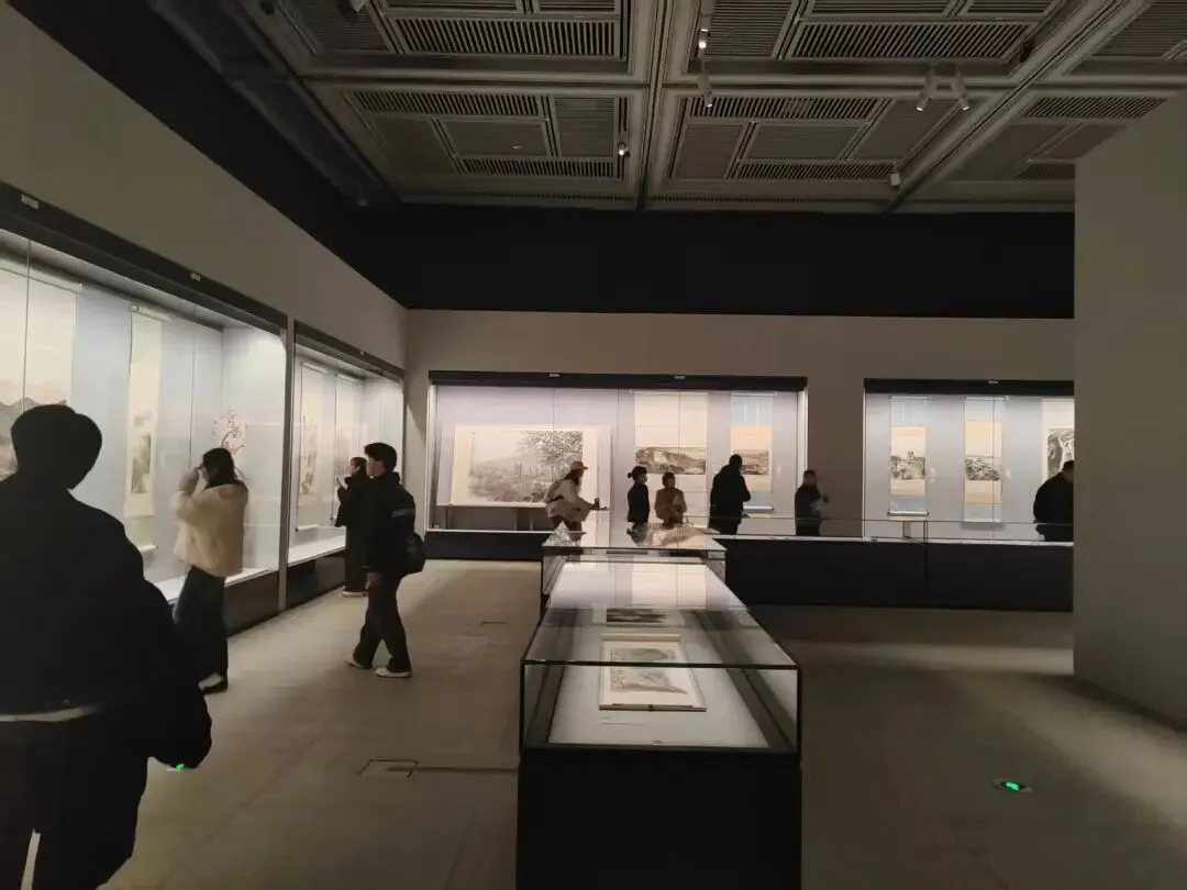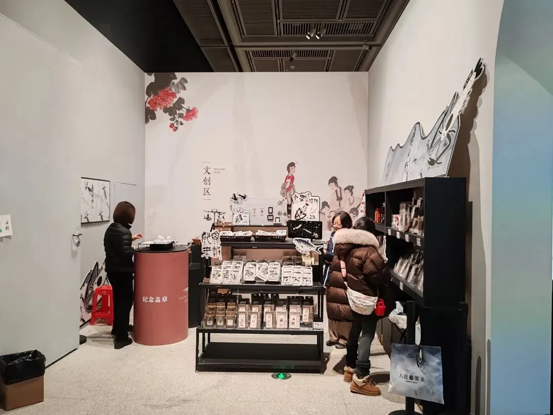 走在街上,微冷。商贩们,早早地就摆开摊位,艰难地招揽着生意。 在东风路与德雅路的十字路口,远远地,可以看到常绿行道树后,露出了湘博半遮半掩的侧脸。 小小的孩童,坐在手推车上,和我们一起等着红灯,准备过马路。 进了湘博,现在楼上往外看,是鲜活的当下,21世纪的长沙和中国。 在一楼的北侧,就可以看到《南北有“二石”》的巨型宣传立牌。 在展厅的门口,从左往右,就立着三块形状各一的立牌。 序厅是开放型的,没有买票的观众,也能够看到展览的序言:“二石”艺术年表。 把齐白石和傅抱石两位20世纪最伟大的两位中国画家放在一起比较展出,这应该是第一次。 把他们放在一起展出的逻辑,是他们都是20世纪中国画创新,贡献最卓著的几位大家之一。 在上个世纪,在中国画创新上面,能与他们并肩的,大概只有吴昌硕、张大千、徐悲鸿和黄永玉等寥寥数人。 讲的是白石老人“衰年变法”的历程和他的“红花墨叶”大写意花鸟画。 讲的是白石老人通过对前人的继承与扬弃,通过对自然与生活的观察,在构图与笔墨上多有变革,最后形成了他独特的富有生活气息与神韵的艺术表达。 在这一部分的结尾,有一个观众与AI进行互动的小环节。 这一部分,讲的是齐傅二人的篆刻艺术。展出的是他们的印章。 第三部分叫:《其命维新》。“其命维新”,是傅抱石的一枚印章。 所以,这一部分,是说的傅抱石的艺术创新活动与成就。 讲的是傅抱石独创“抱石皴”,从中国古人古诗、日本绘画和时代精神中创新山水画法的过程与成就。 这一部分是展示的傅抱石与齐白石在新中国成立后,与时俱进,进行创新的历程及成果。 最近几年,我也参观了二三十家博物馆。我发现湖南省博物馆有一个与众不同的特点,或者说优点。 就是,绝大多数的博物馆,不会凸显策展中的具体的工作人员,而只是让笼统的某某博物馆某某中心这个集体的名义出现在公众的面前。 但是湖南博物馆会把策展中的每一个工作人员的名字,展示在公众面前。个人的贡献与荣耀,领导和集体不会剥夺。 这是一个非常好的传统,折射出“眼睛中有人”的人文主义精神。 如果,能像其他博物馆一样,摆放一些蒲团或者坐垫就好了。 展厅的出口旁,有一个小小的文创商店,店子和商品,都很精致。 展厅中的插花,都还有点意思。都能与相关单元的意旨贴合。 观众们走在展厅里,也融入了展陈之中,变成了画中的人物。 我挑选了一些我喜欢且认为重要的展品,拍摄下来,列举如下: 艺术品,尤其是书法与绘画,是需要到现场揣摩原作的。