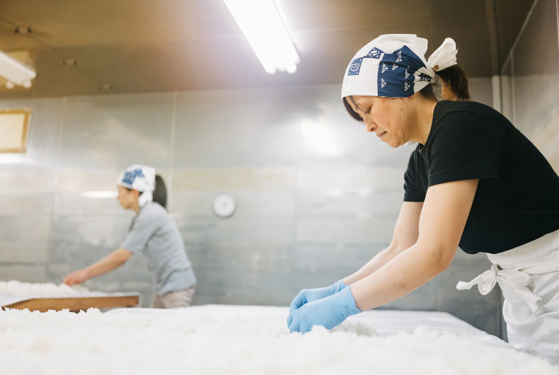 最后,清酒基底上还加了一点酿造酒精——高度蒸馏酒,能溶解很多香气,所以起到调节香气作用,让果香、米香、酒香彼此融合,尾调还有淡淡的橘子皮清香。
