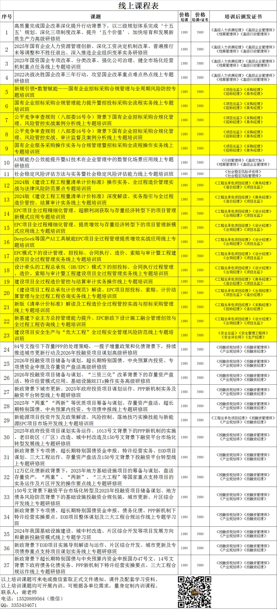 注:报名汇款后发送课程链接及课件,学员凭账号登录平台进行学习(可回放半年)。组织其他单位或同一单位报名参加6人以上可减免1人培训费用(不含证书)。联系人:谢老师