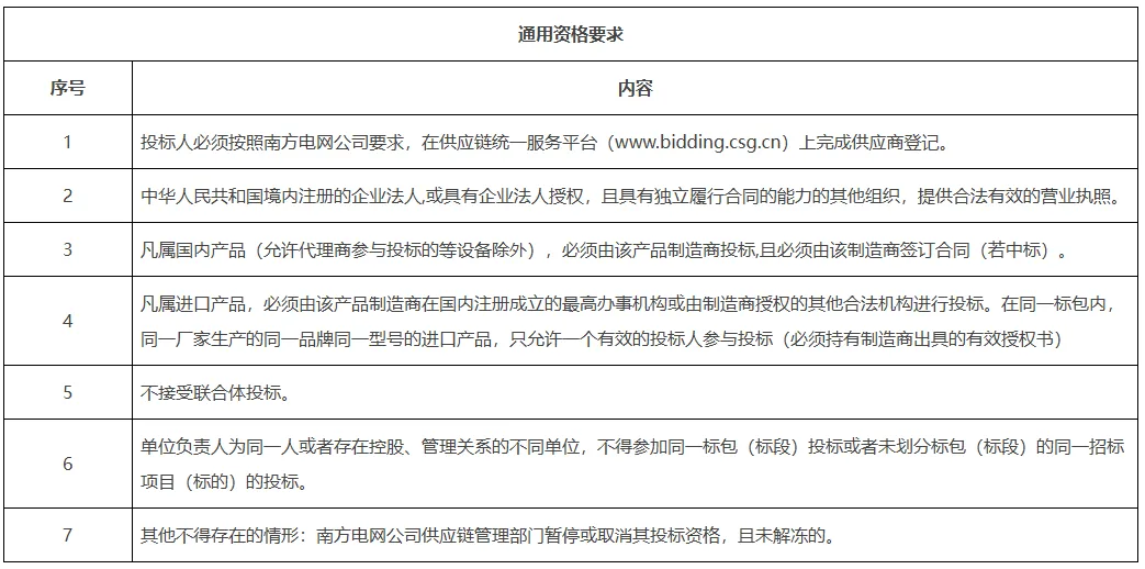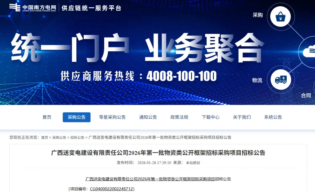 来源:南方电网供应链统一服务平台
