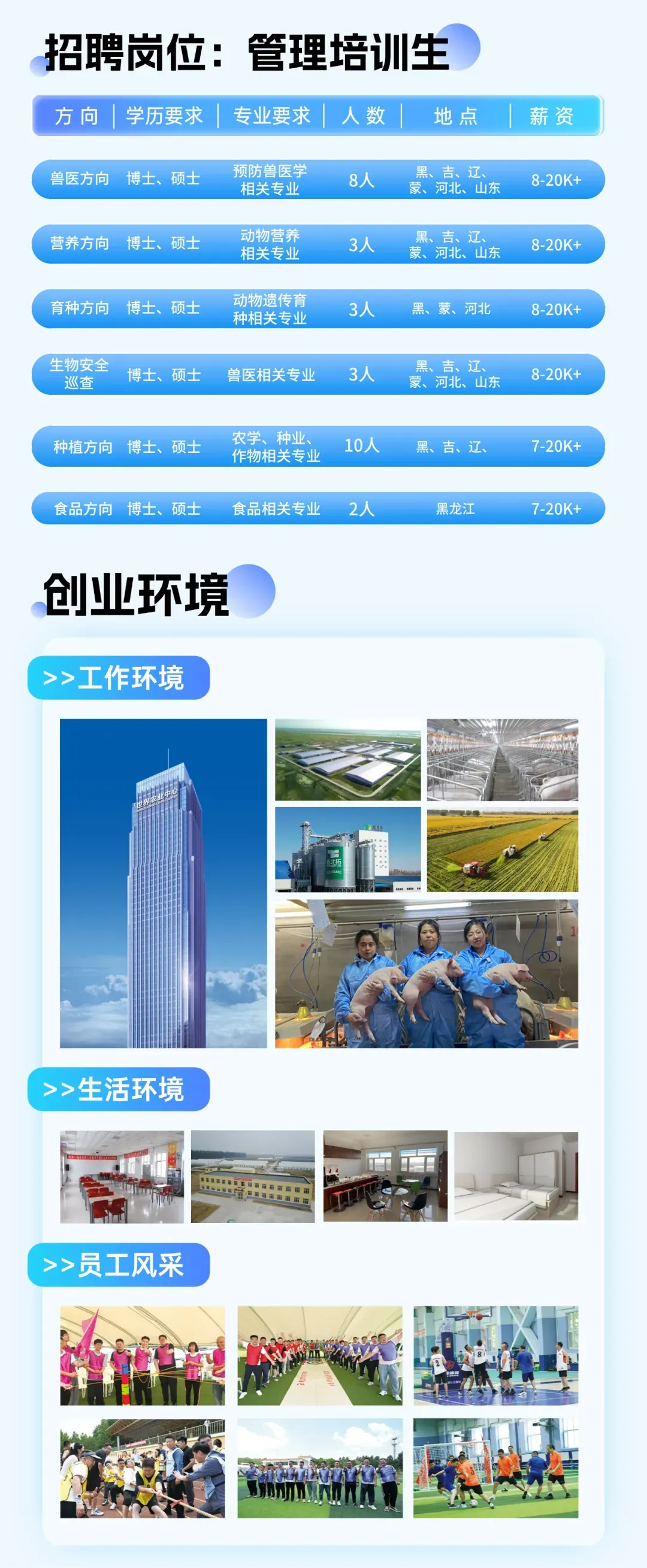 硕、博士:预防兽医学、动物营养、动物遗传育种、兽医、农学、种业、作物、食品相关专业