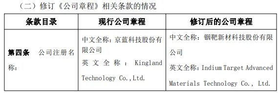 2026年1月24日,ST京蓝发布关于拟变更公司名称、注册资本并修订《公司章程》的公告。公告称京蓝科技股份有限公司(以下简称“公司”)于 2026 年 01 月 22 日召开第十一届董事会第二十四次临时会议,审议通过了《关于拟变更公司名称、注册资本并修订<公司章程>的议案》,同意将公司名称拟变更为“铟靶新材科技股份有限公司”,并同步修订《公司章程》的相关条款。变更后的注册资本为29.17亿元。公司证券代码保持不变,证券简称待公司名称变更完毕后向交易所提交申请进行相应变更。公告指出,2023年底公司完成破产重整后,新实控人已带领公司将核心业务全面转型到含锌铟固危废资源化利用以及以铟为核心的稀有金属提取业务。凭借新实控人多年来建立的业务基础与核心技术优势,经过两年来的布局,公司已在金属铟领域形成了较强的优势;同时,随着钙钛矿/异质结光伏电池、GPU 芯片所需的光模块、汽车调光玻璃等领域的迅速发展不断新增对铟的需求且一时难以找到充分的替代物,铟的战略稀缺特性越来越明显。基于铟资源优势、以及过去两年来对高密度 ITO 靶材业务所进行的多项准备,公司开始正式进军高密度 ITO靶材业务,使公司的战略优势与核心竞争力,进一步延伸到作为多个行业关键材料的高密度 ITO 靶材领域,以尽可能提升公司的价值、回报股东。为准确传递公司的上述战略发展变化,拟对公司名称进行变更。同日,ST京蓝公布,根据公司的经营战略及业务发展规划,公司拟与合作方云南驰和共同出资设立由公司控股的铟靶新材科技(红河)有限公司,注册资本为人民币1,000万元,其中公司以自有资金出资800万元人民币,持股比例为80%;合作方云南驰和以自有资金出资200万元人民币,持股比例为20%。铟靶红河拟购买位于云南的某ITO靶材企业的全部设备,对其进行检修和技术改造后于2026年6月底之前投产高密度ITO靶材。ST京蓝主要从事工业及城市固体废物无害化处置及二次资源综合回收、土壤修复、耕地土壤环境综合治理保护、高标准农田建设等业务。近年来,ST京蓝加速推进业务转型,积极发展资源化综合利用等业务。2024年年报显示,ST京蓝归母净利润为亏损1.09亿元,扣除非经常性损益后的净利润更是亏损1.19亿元。2025年前三季度,公司营业收入3.31亿元,同比增长310.85%,归母净利润为-1.05亿元,亏损额度较去年同期增加。