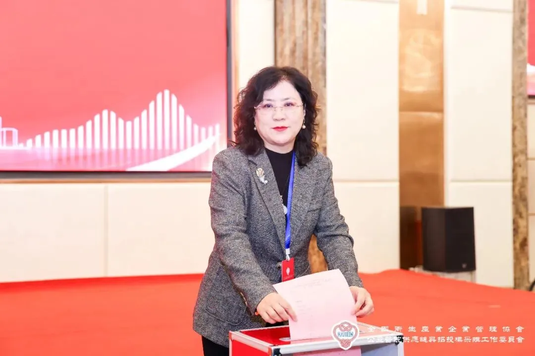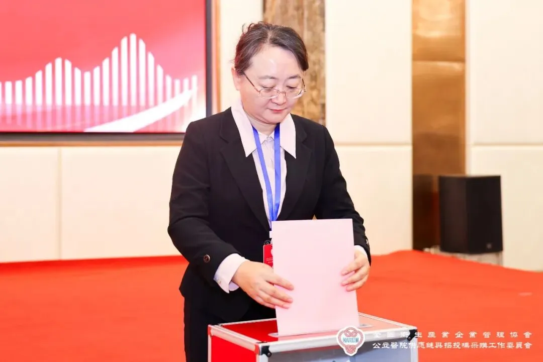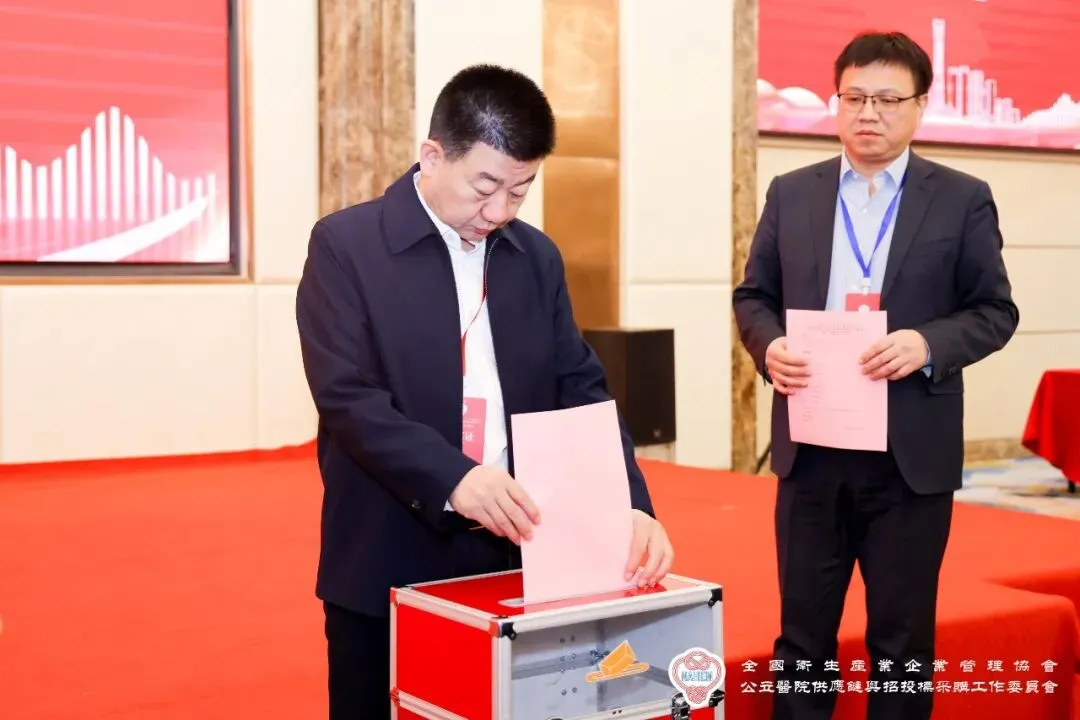 全国卫生产业企业管理协会副会长贾建平宣读《关于成立全国卫生产业企业管理协会公立医院供应链与招投标采购工作委员会的批复》,并主持选举仪式。在庄重的会歌声中,到场委员代表依序进行投票。