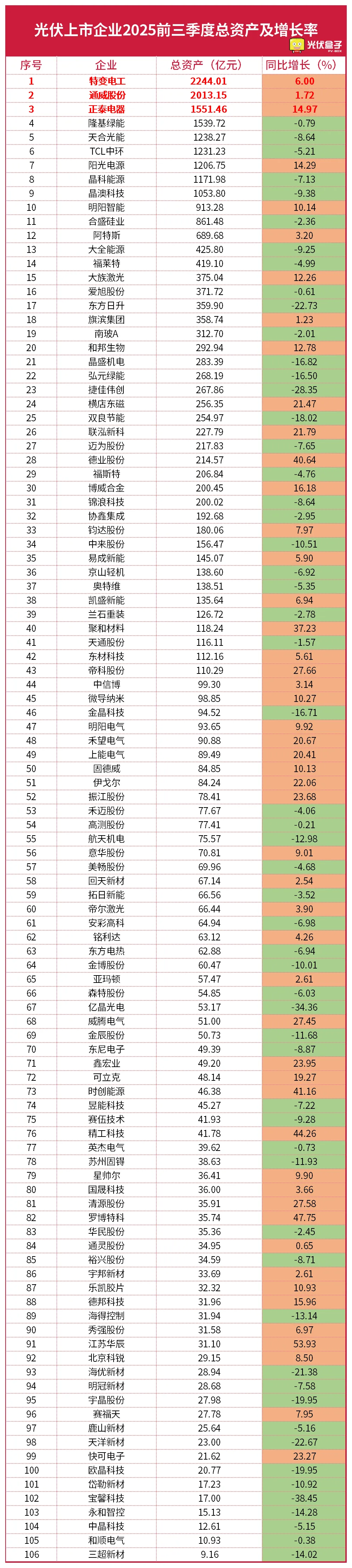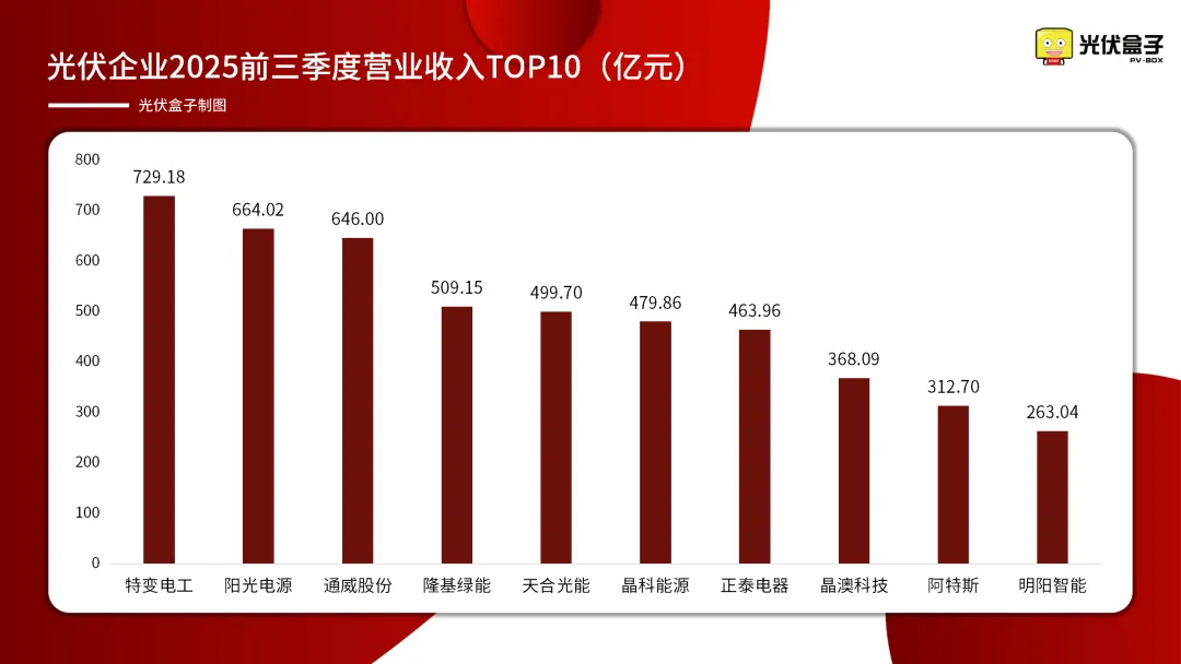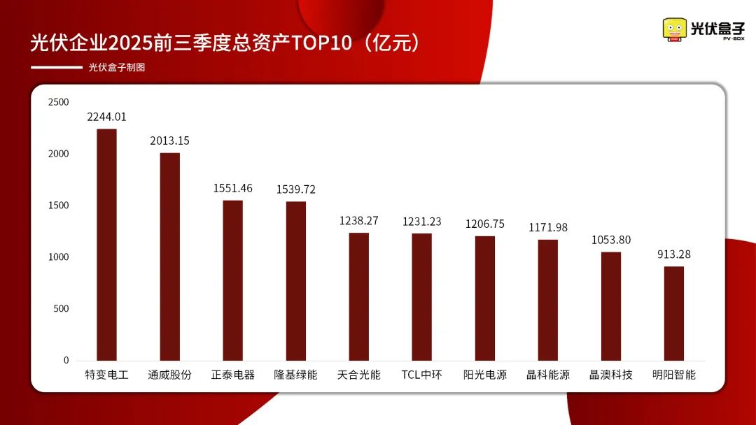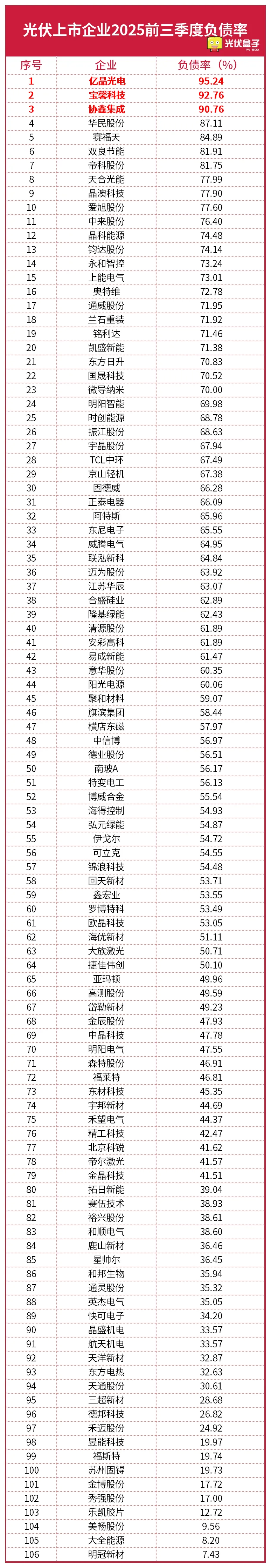 据盒子统计,2025年前三季度,200多家中国光伏上市企业营业收入共计8984.89亿元,同比下降7.71%;总资产高达25961.41亿元,同比增长5.46%,反映了近年来光伏行业高速扩张态势与行业的重资产属性。好消息是行业整体负债率53.58%,尚处于合理范围内。