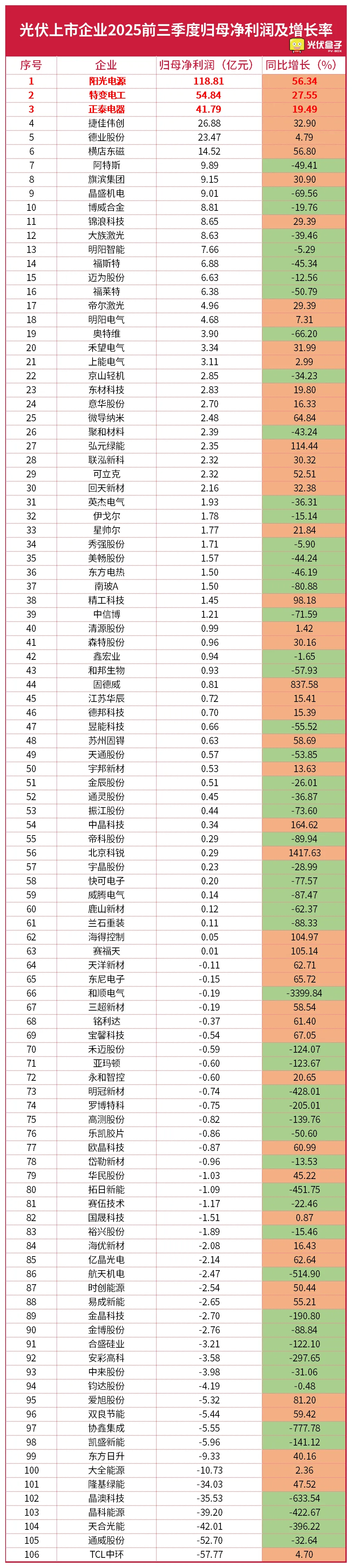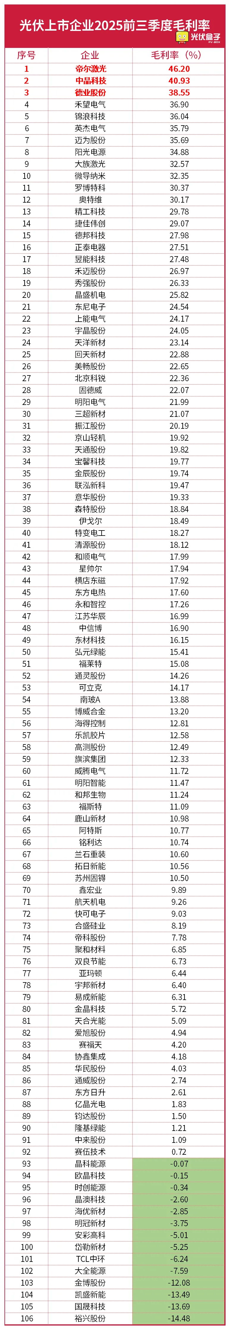 2025前三季度,光伏上市企业整体归母净利润79.56亿元,同比下降48.18%。毛利率约14.21%,处于制造业端较低水平,既没有资源禀赋型行业的“享受”,亦没有酒品行业的高度定价权。