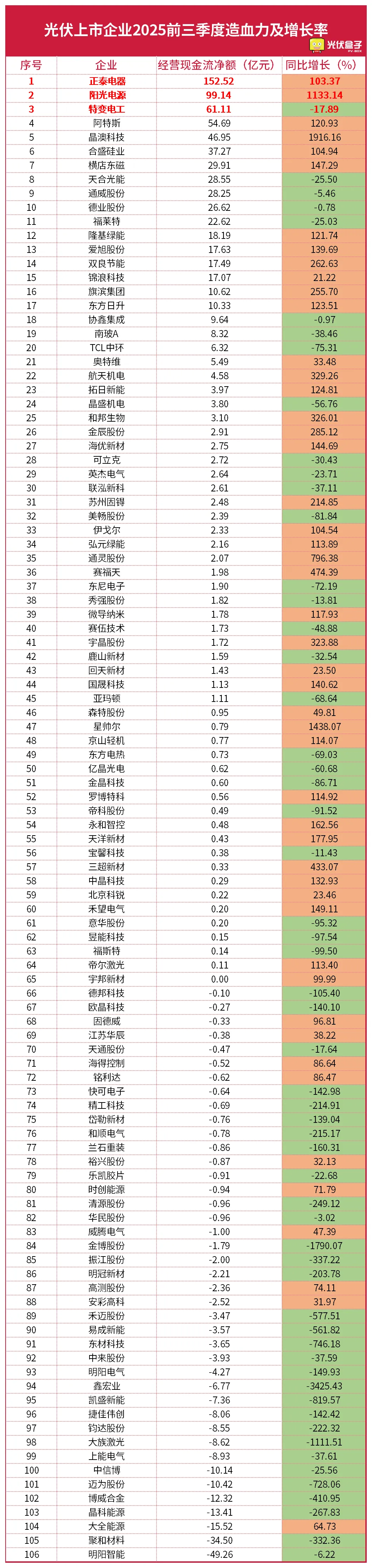 在此,盒子汇总梳理了106家上市光伏企业的财报数据情况,涉及硅料、硅片、电池、组件、逆变器、辅材等多个领域。包含营收、净利润、毛利率、负债率、总资产、造血力、货币资金、研发八大维度。