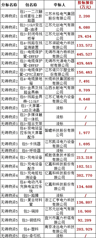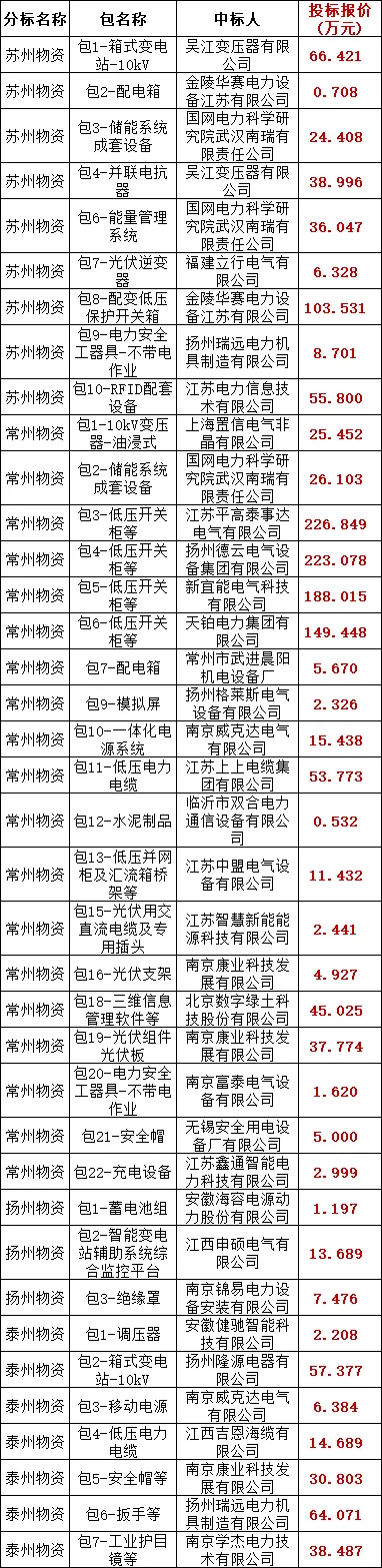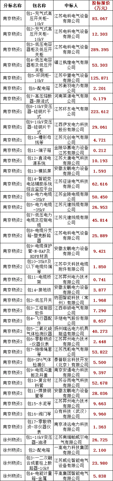 国网江苏电力2025年原集体企业第十一次物资公开招标采购-1项目的中标候选人公示活动已经结束。现将中标人名单公告如下:
